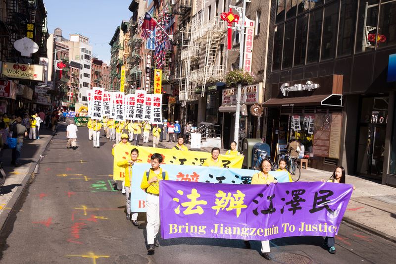 游行分“法轮大法好”、“停止迫害法轮功”、“退!党!”三大方阵。队伍从东百老汇大街夹派克街起步,沿福州移民聚居及经商的东百老汇大街行进,然后经窝扶街、茂比利街、摆也街、勿街,最后到达“且林士果广场”(Chatham Square)。法轮功学员手持“法轮大法洪传世界”、“祝唐人街的朋友们吉祥如意”等横幅,面带微笑,向道路两旁的民众招手致意,展现修炼人的善良、慈悲、祥和的精神风貌。