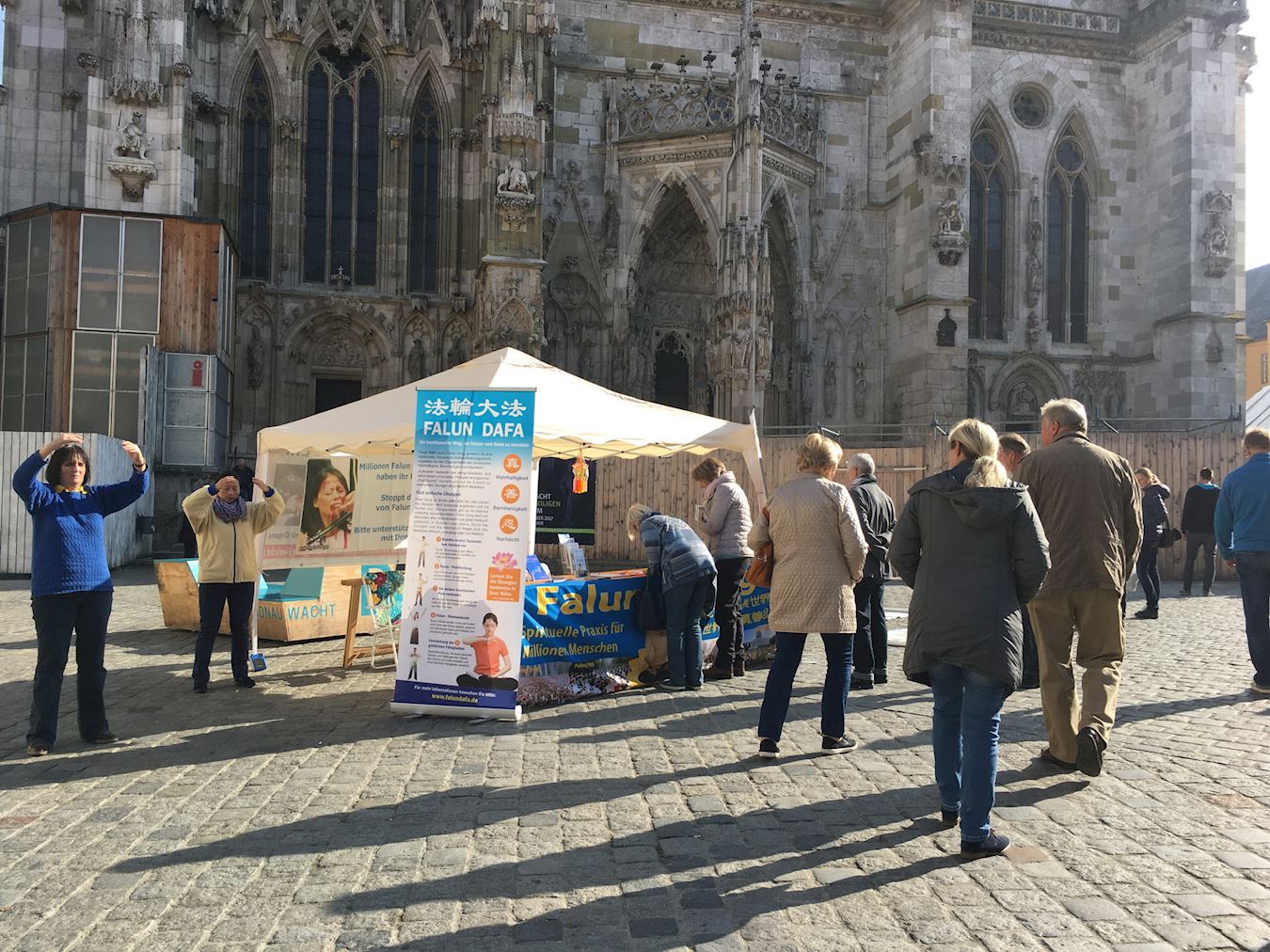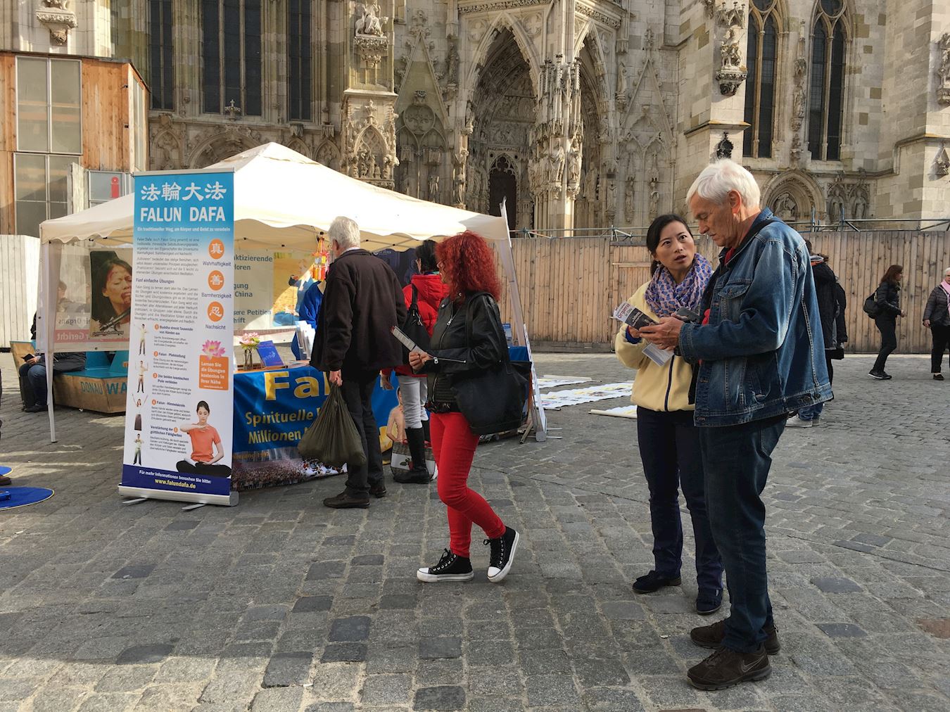 ![]() 图1:法轮功学员在德国南部古城雷根斯堡举办信息日。 |