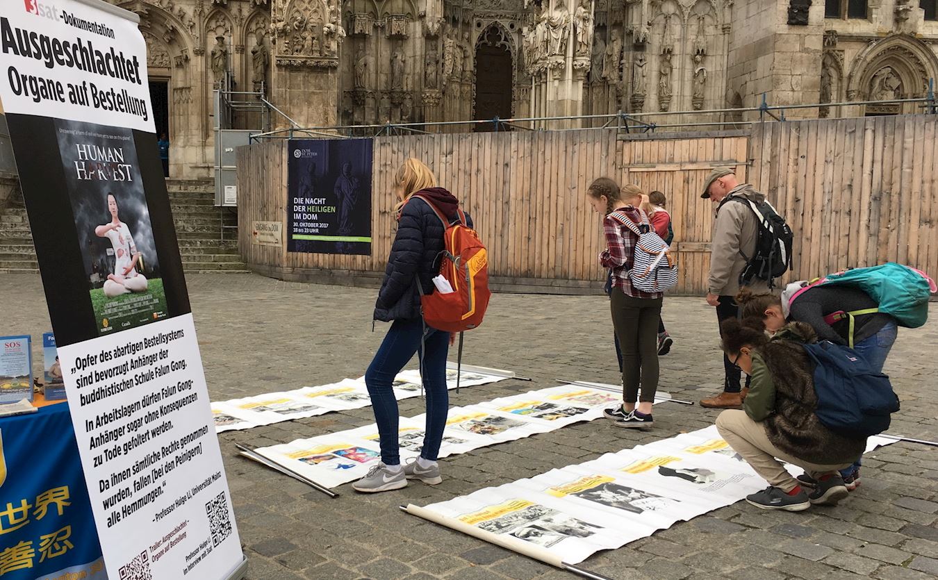 一位德国中年男士看到揭露活摘器官的展板后,马上愿意签名反对活摘。他和太太告诉法轮功学员,他们在慕尼黑已经看到过揭露活摘器官的活动。这次他们在与学员的深入交谈中了解到更多中国器官来源被掩盖的事实。这位中年男士听后,表示会上网查看有关活摘的记录片,也会把消息传给更多人知道。他还提到自己有机会去中国,他在考虑如何让那里的人知道真相,学员建议他带给中国朋友一个自由门破网软件,让中国人看到被封锁的法轮功网站和揭露活摘的网站,他一口答应会这么做。