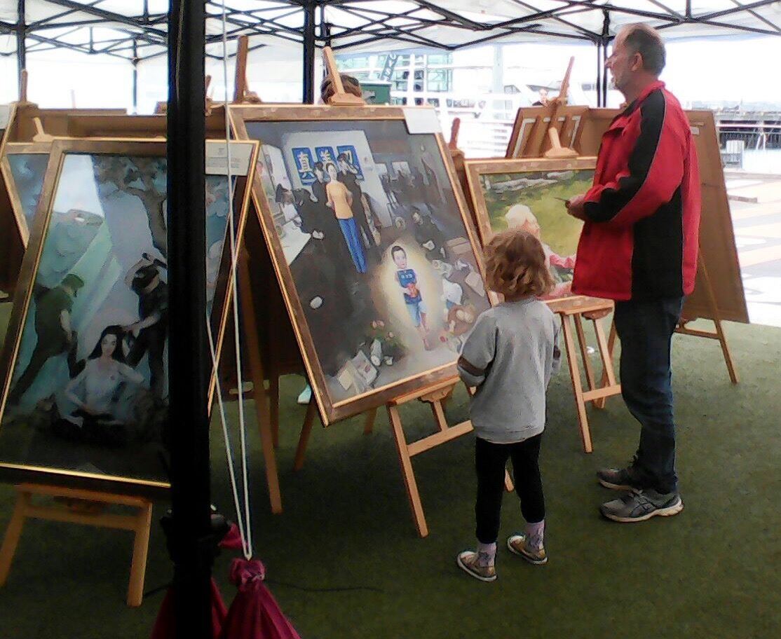 Gary夫妇来自新西兰著名的艺术和旅游之岛Waiheke Island,他们认真地观看每一幅作品,深受震动。在观赏画作《非法活摘器官》后,他们说:“这简直难以置信。人把活人的器官取出来赚钱。现在人们对动物尚且非常保护和友好,怎么可以对人这样?这是我听说过的最邪恶的事情!”他们与工作人员深入交流,谈了很多关于精神和信仰的话题,他们觉得自己与法轮大法修炼者有着来自心灵深处的连接。他们接着表示,“我们需要一个和平美好的世界,并要付出努力来实现。即便我们的身体可能不够强健,但我们可以拥有不屈的灵魂!我们一旦有‘真善忍’这样美好的信仰,我们就可以将之口口相传。”离开时,他们拿了介绍真相的纪录片,希望了解更多具体细节和真相。