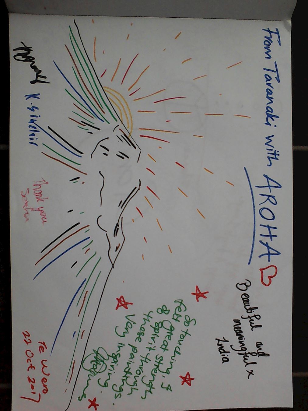 美展中,很多来自新西兰其它城镇的观众们知道法轮大法的美好后,表示要回去好好了解一下,上网学炼。一位观众的留言说:(画展)很美丽又有深意。非常触动人心,这些画让我感受到了力量,以及精神启迪。