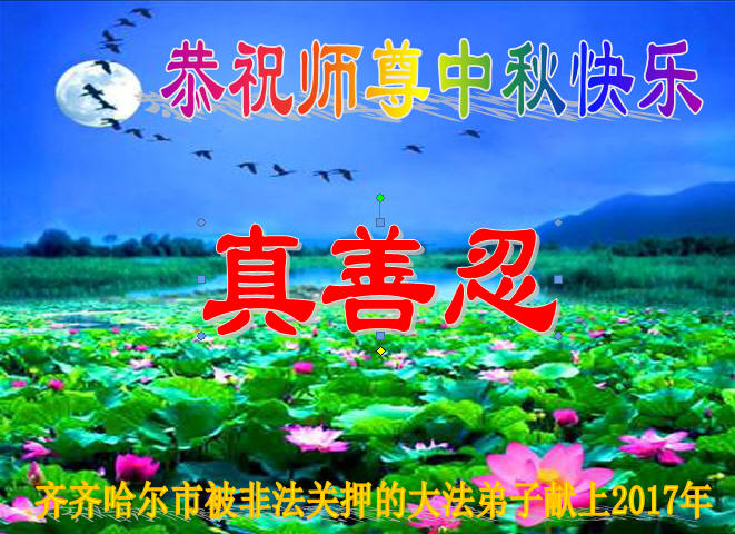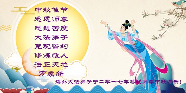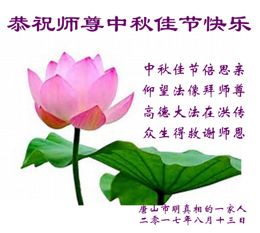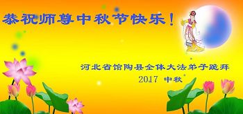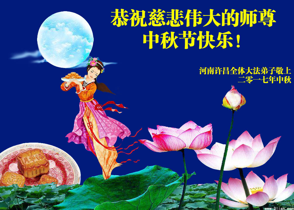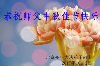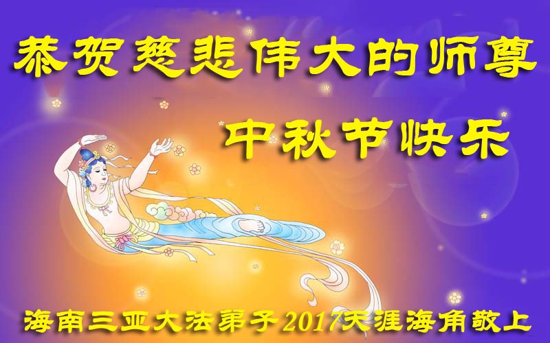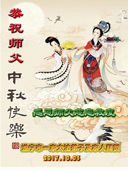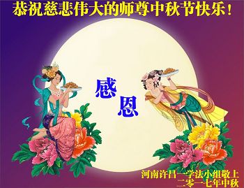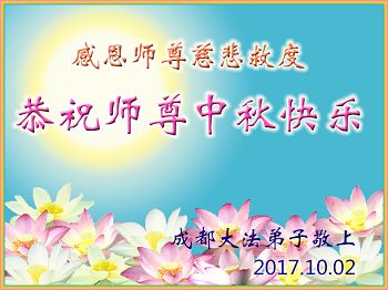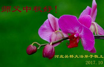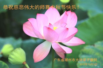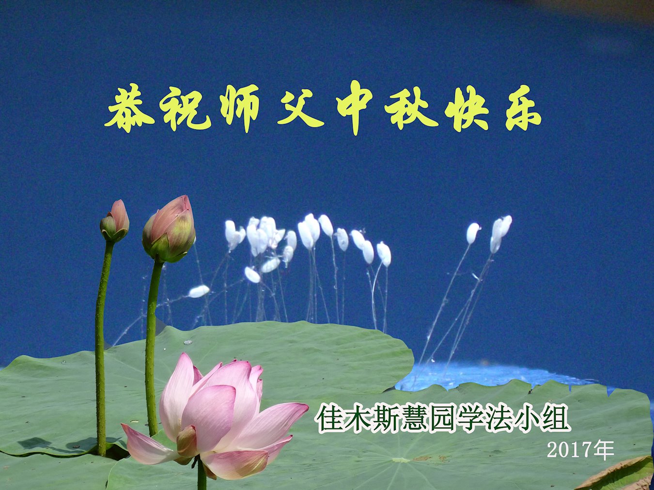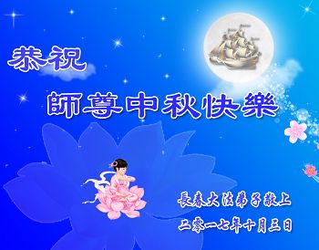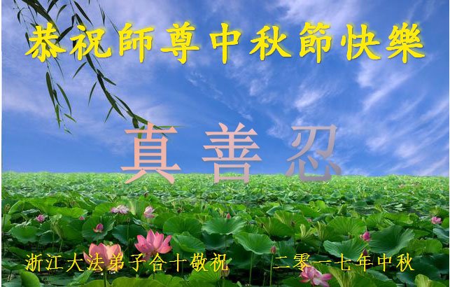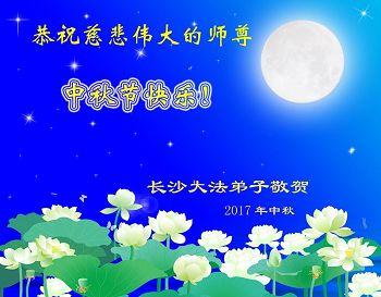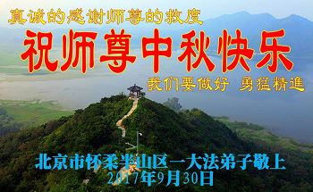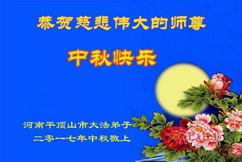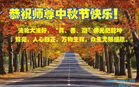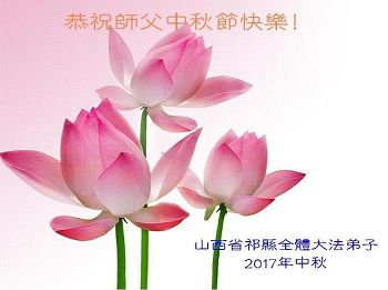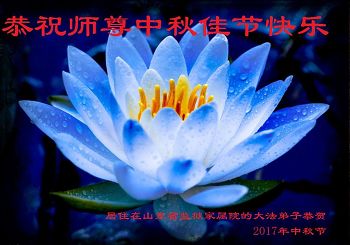 在二零一七年传统中秋喜庆佳节来临之际,弟子深怀无限感恩的心情叩拜师父,感恩师父的慈悲苦度,感恩师父对众苍生的慈悲救度,恭祝师父中秋好。在师父正法最后时间里,弟子一定用心学好法,向内修,修好自己,用心做好三件事,用心救人,兑现誓约,绝不辜负师父的慈悲苦度,跟师父回家。