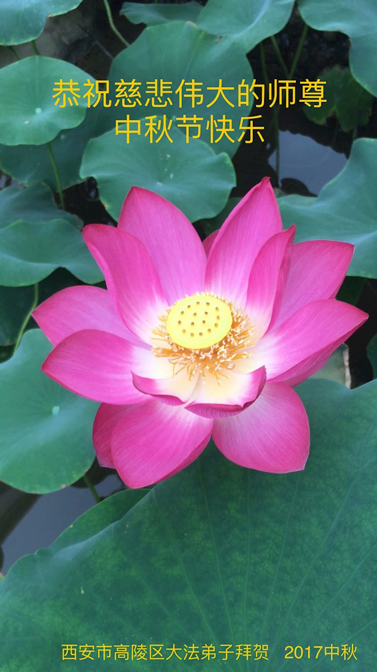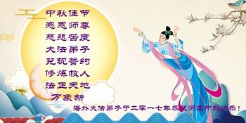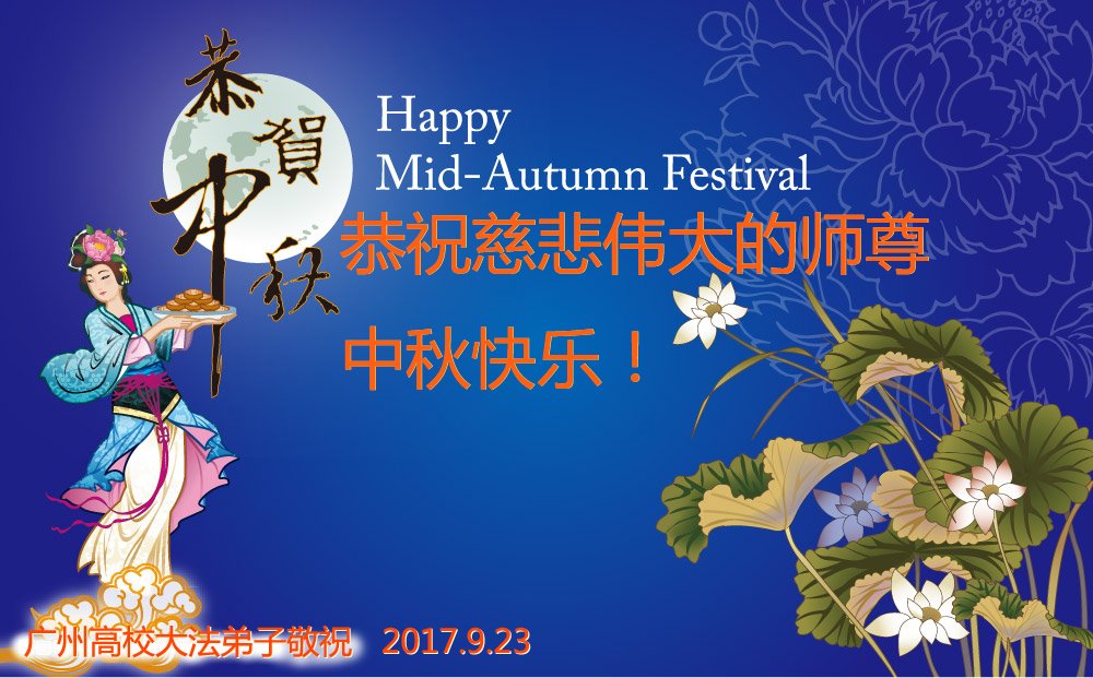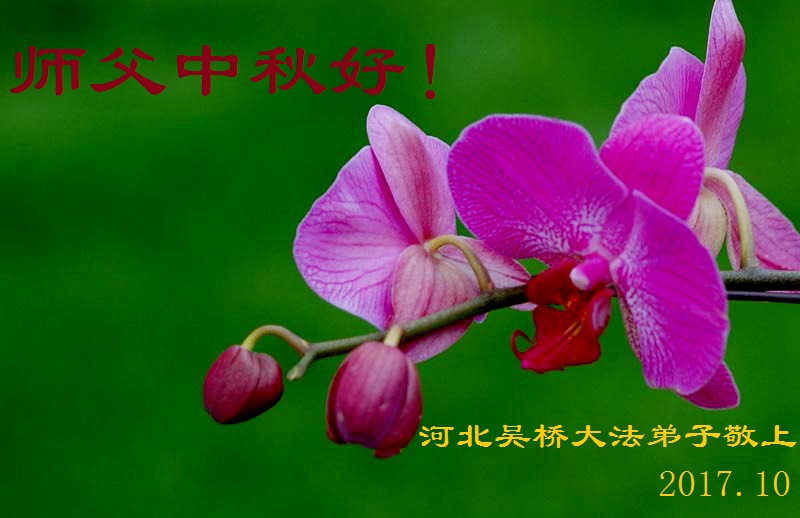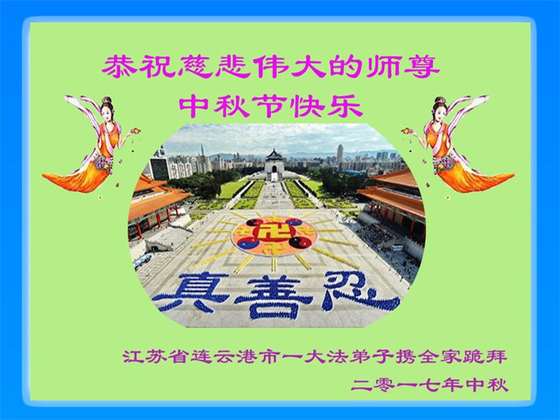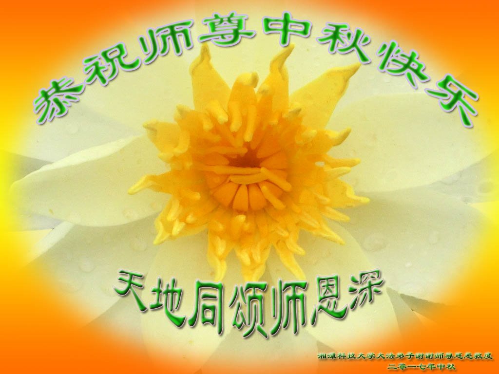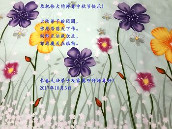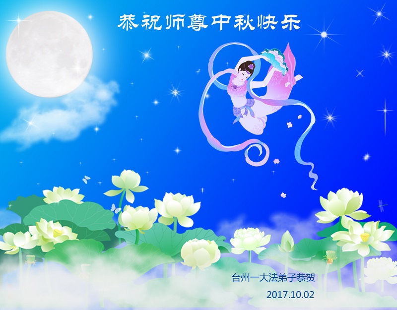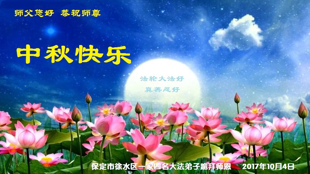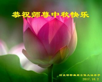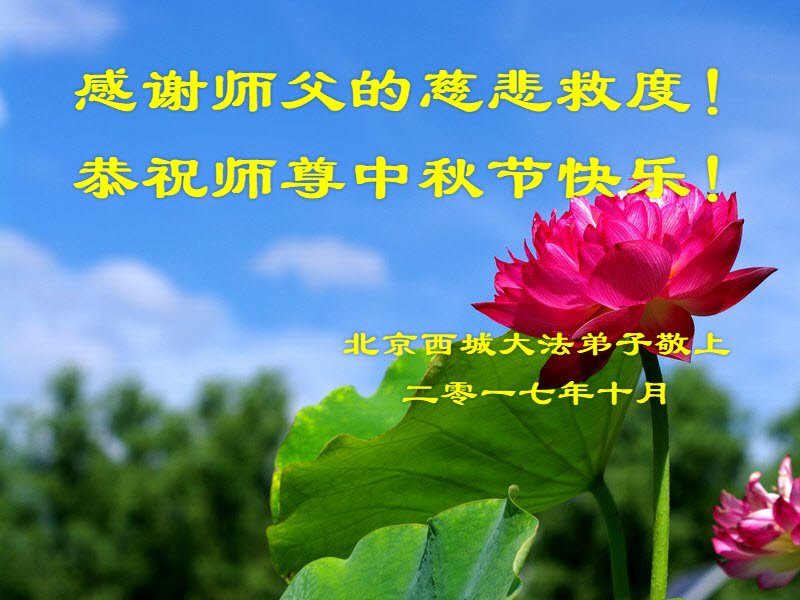 在二零一七年传统中秋喜庆佳节来临之际,弟子深怀无限感恩的心情叩拜师父,感恩师父的慈悲苦度,感恩师父对众苍生的慈悲救度,恭祝师父中秋好。在师父正法最后时间里,弟子一定用心学好法,向内修,修好自己,用心做好三件事,用心救人,兑现誓约,绝不辜负师父的慈悲苦度,跟师父回家。