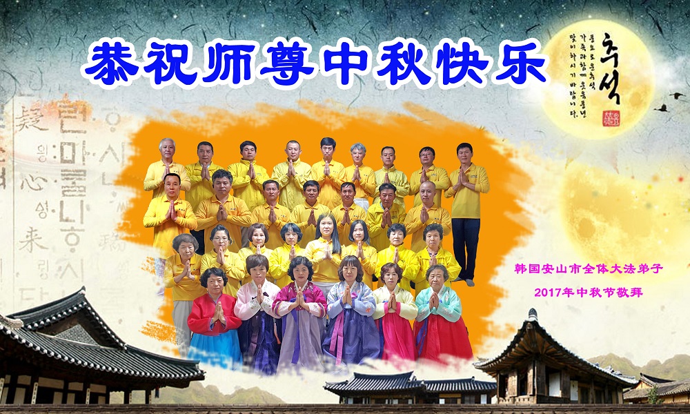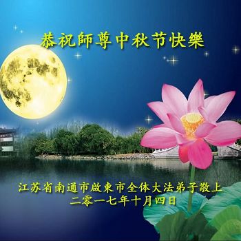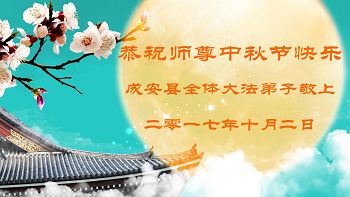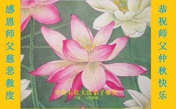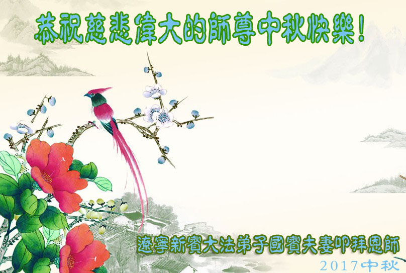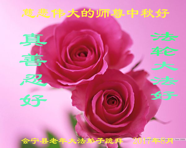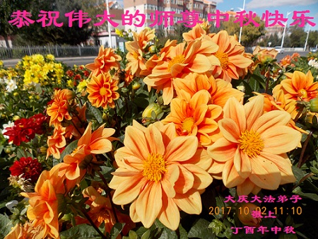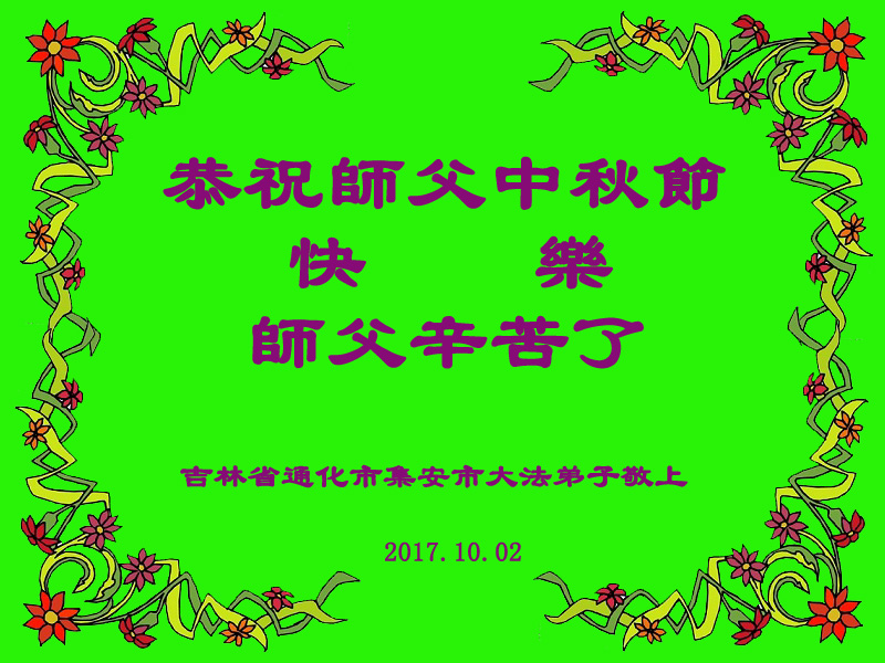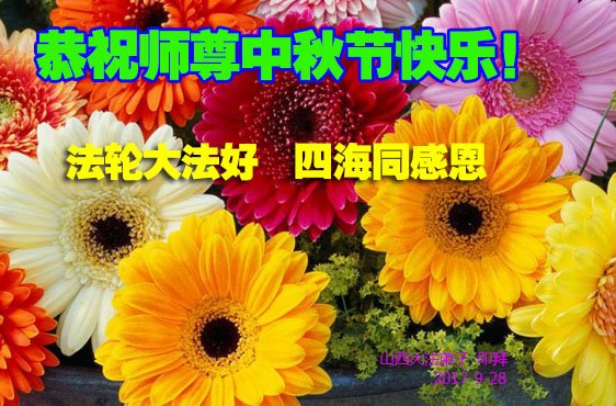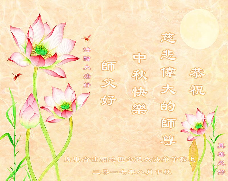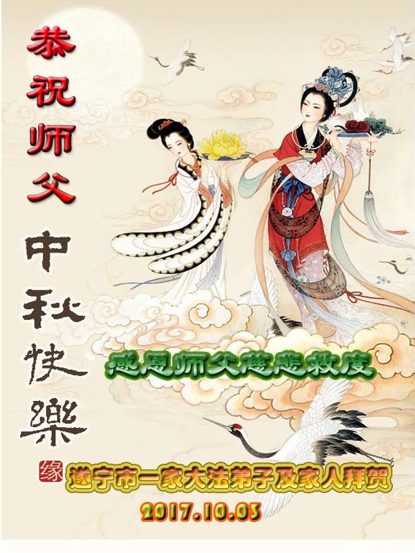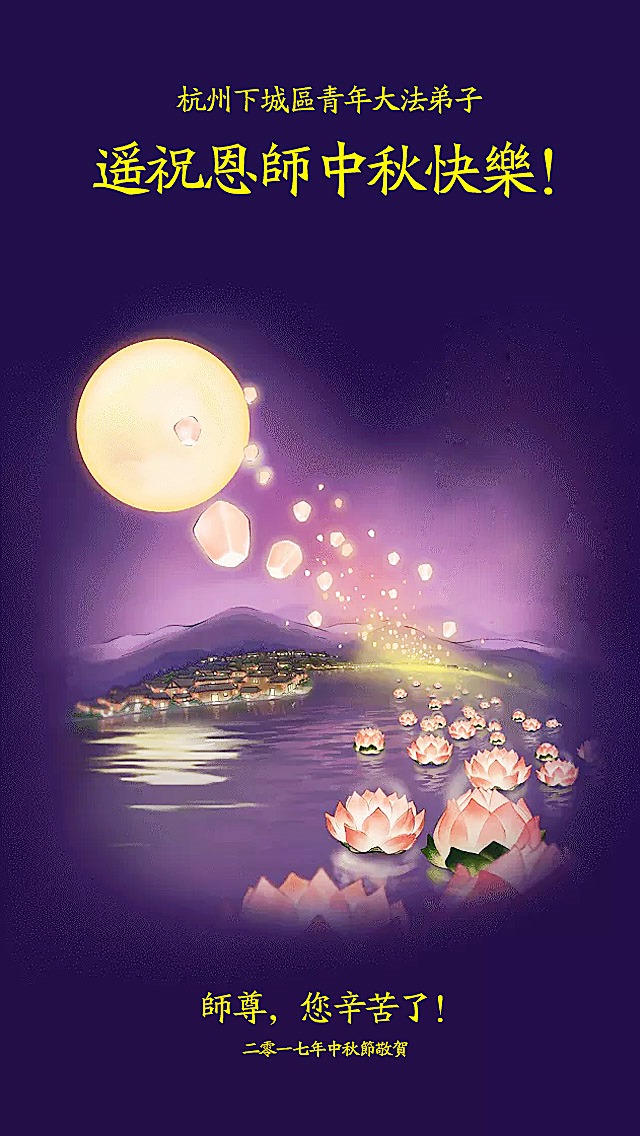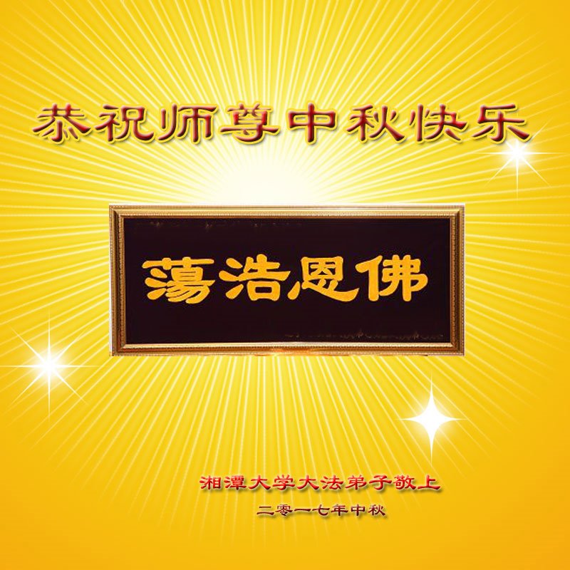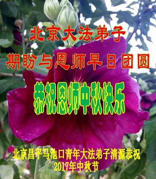 在二零一七年传统中秋喜庆佳节来临之际,弟子深怀无限感恩的心情叩拜师父,感恩师父的慈悲苦度,感恩师父对众苍生的慈悲救度,恭祝师父中秋好。在师父正法最后时间里,弟子一定用心学好法,向内修,修好自己,用心做好三件事,用心救人,兑现誓约,绝不辜负师父的慈悲苦度,跟师父回家。