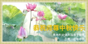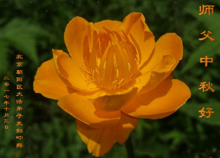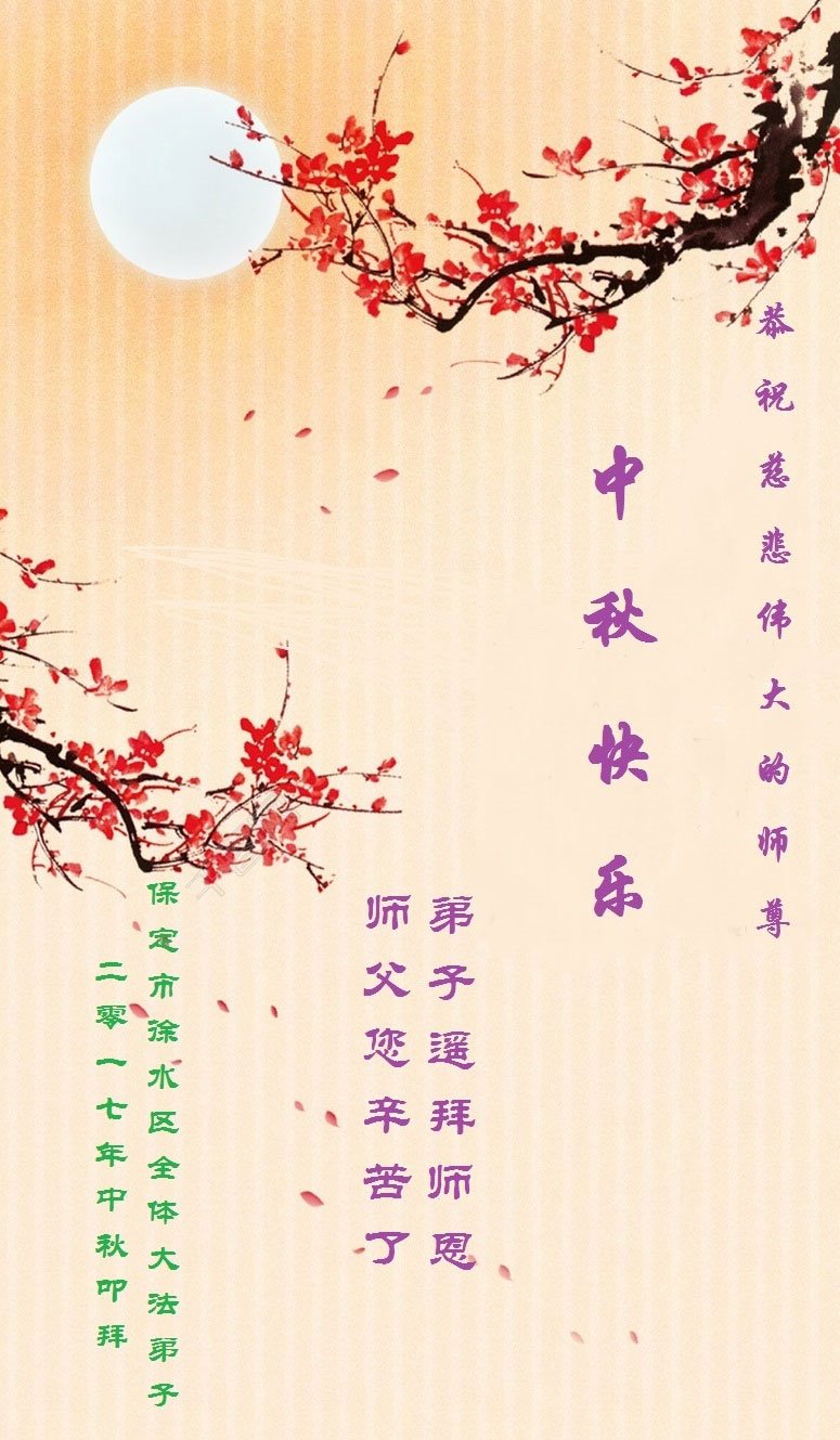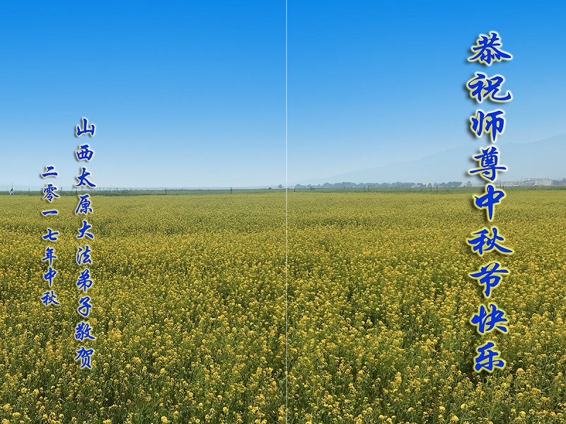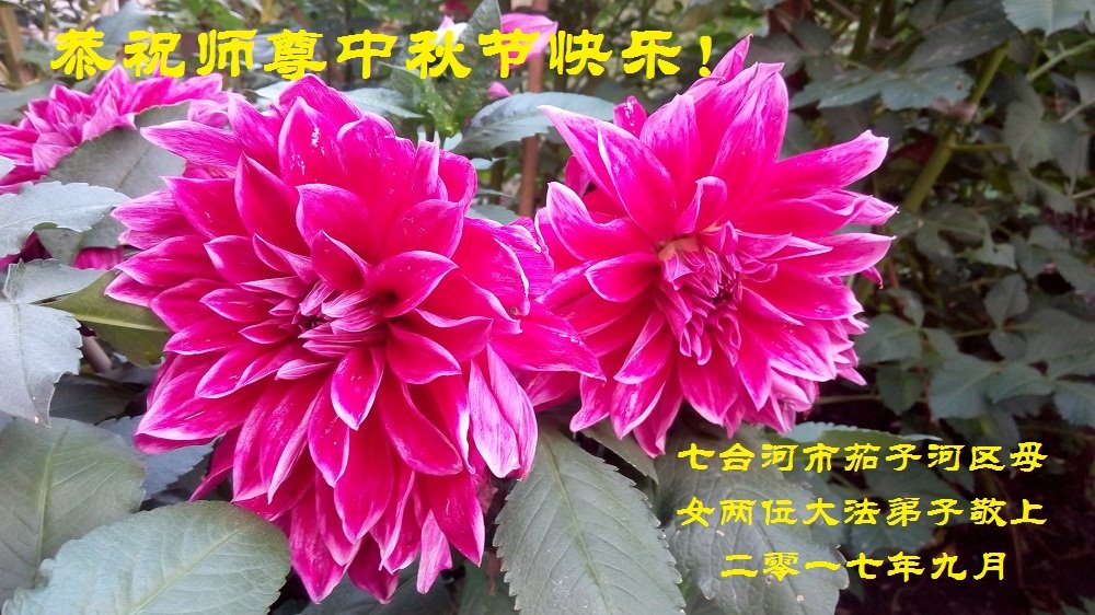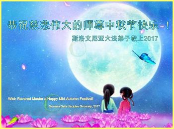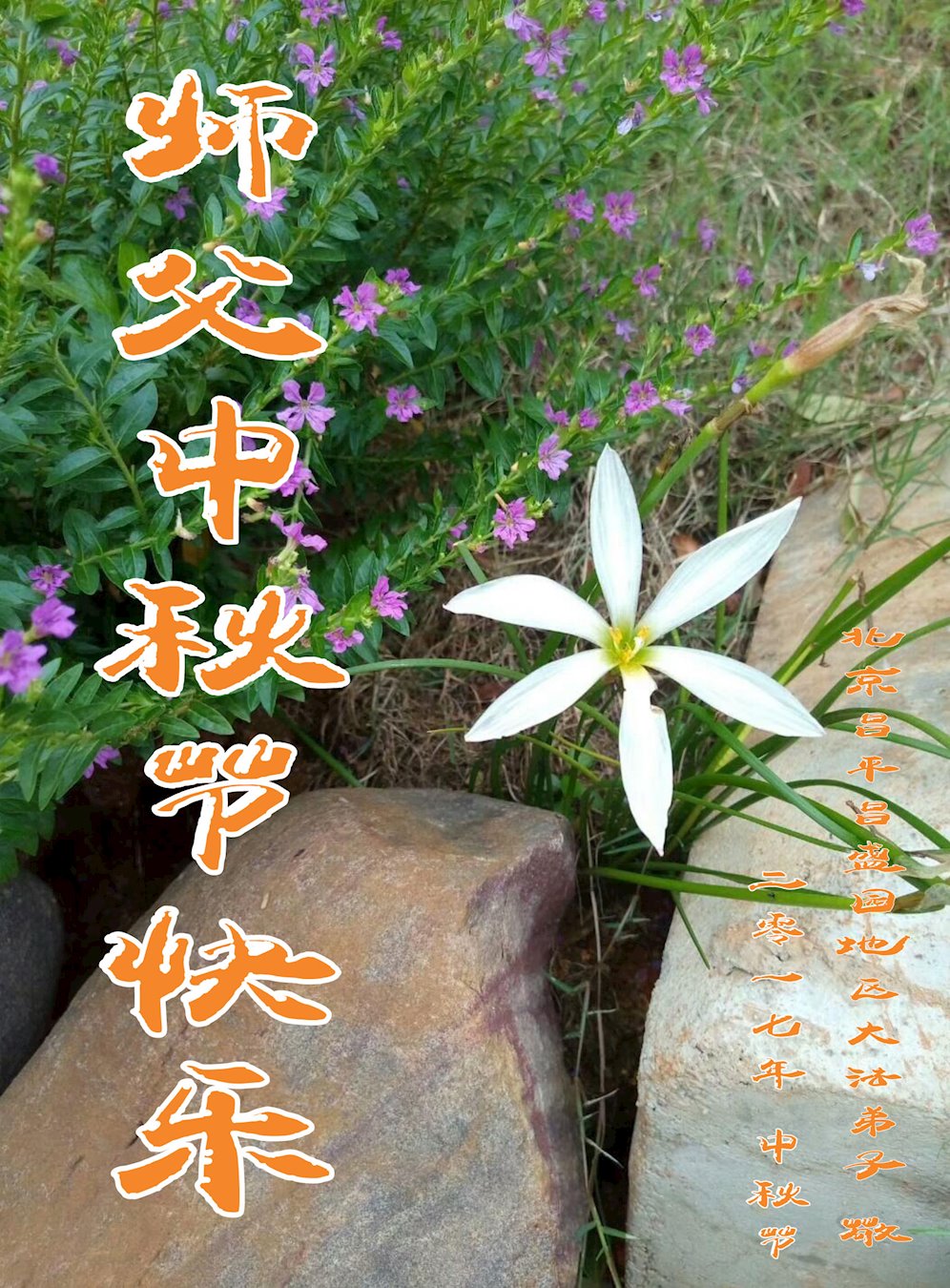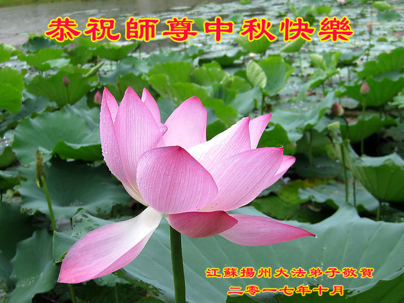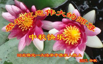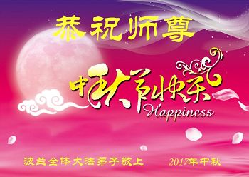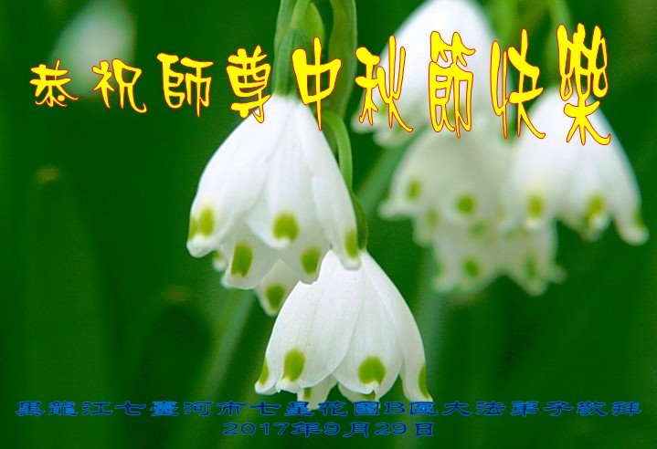 在二零一七年传统中秋喜庆佳节来临之际,弟子深怀无限感恩的心情叩拜师父,感恩师父的慈悲苦度,感恩师父对众苍生的慈悲救度,恭祝师父中秋好。在师父正法最后时间里,弟子一定用心学好法,向内修,修好自己,用心做好三件事,用心救人,兑现誓约,绝不辜负师父的慈悲苦度,跟师父回家。