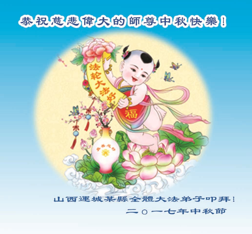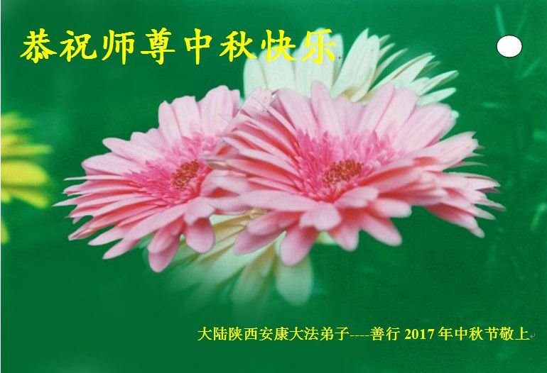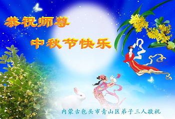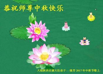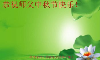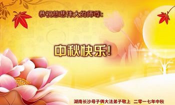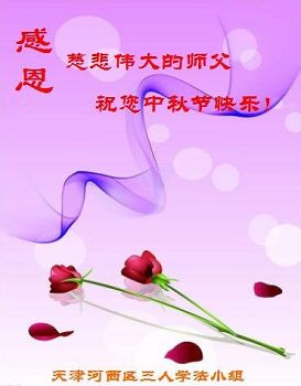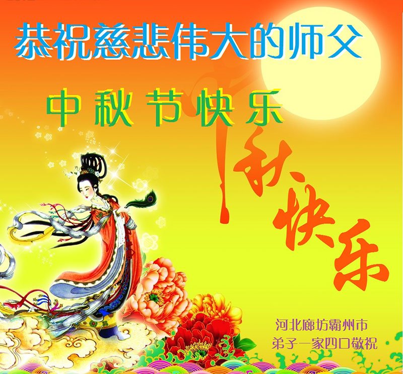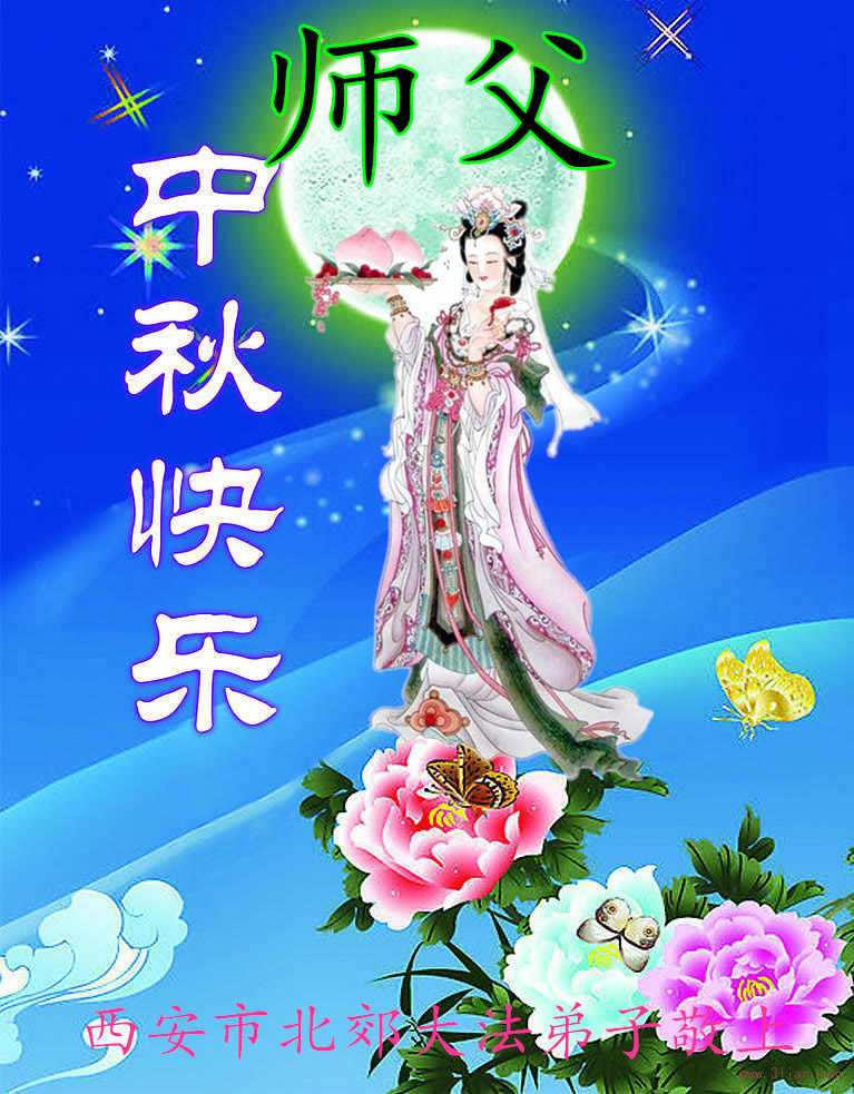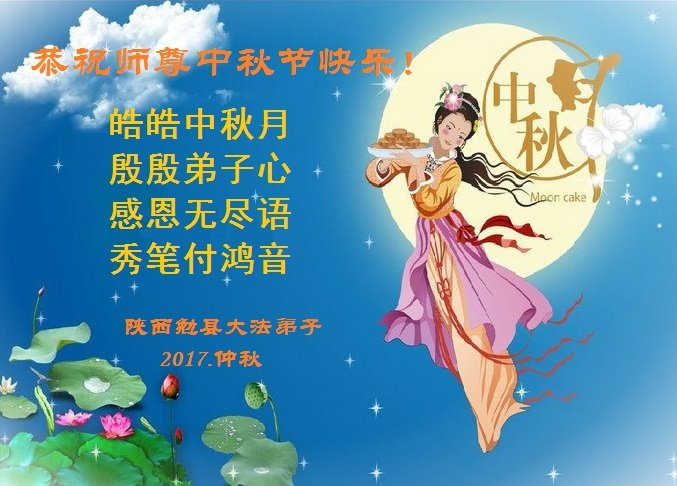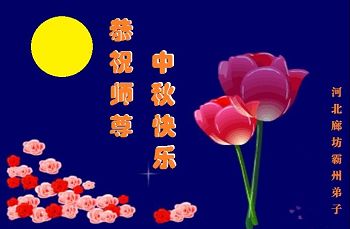 陕西省礼泉县二位明白真相的世人,委托法轮功学员向慈悲伟大的师尊表示节日的问候,敬祝师尊中秋节快乐!
