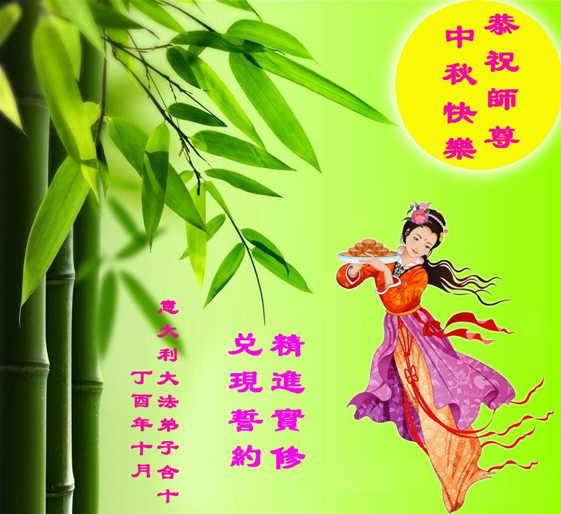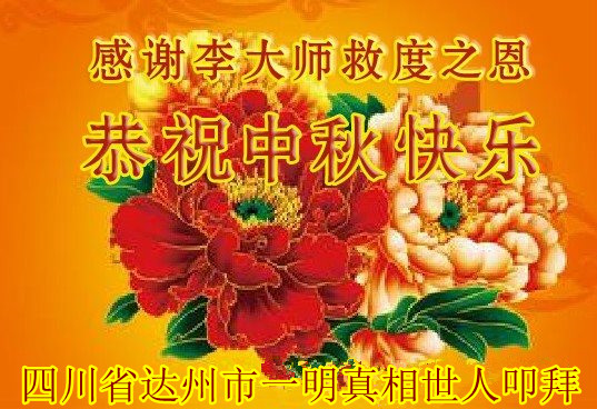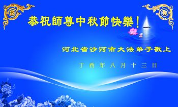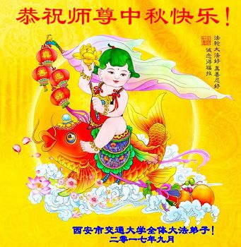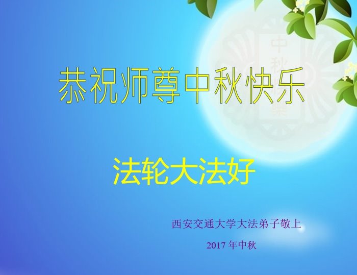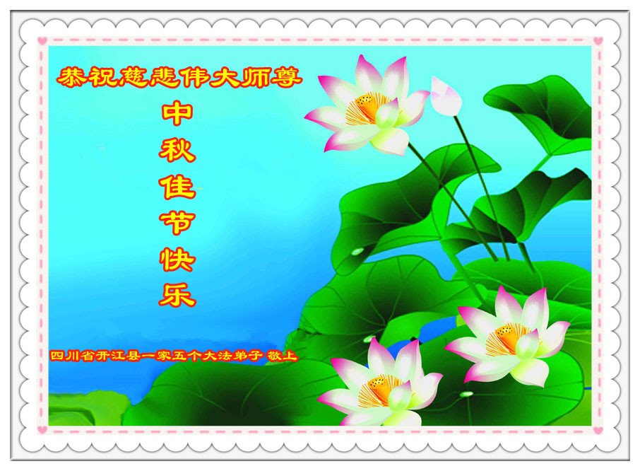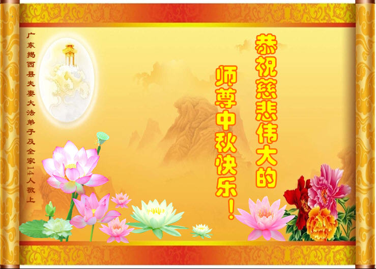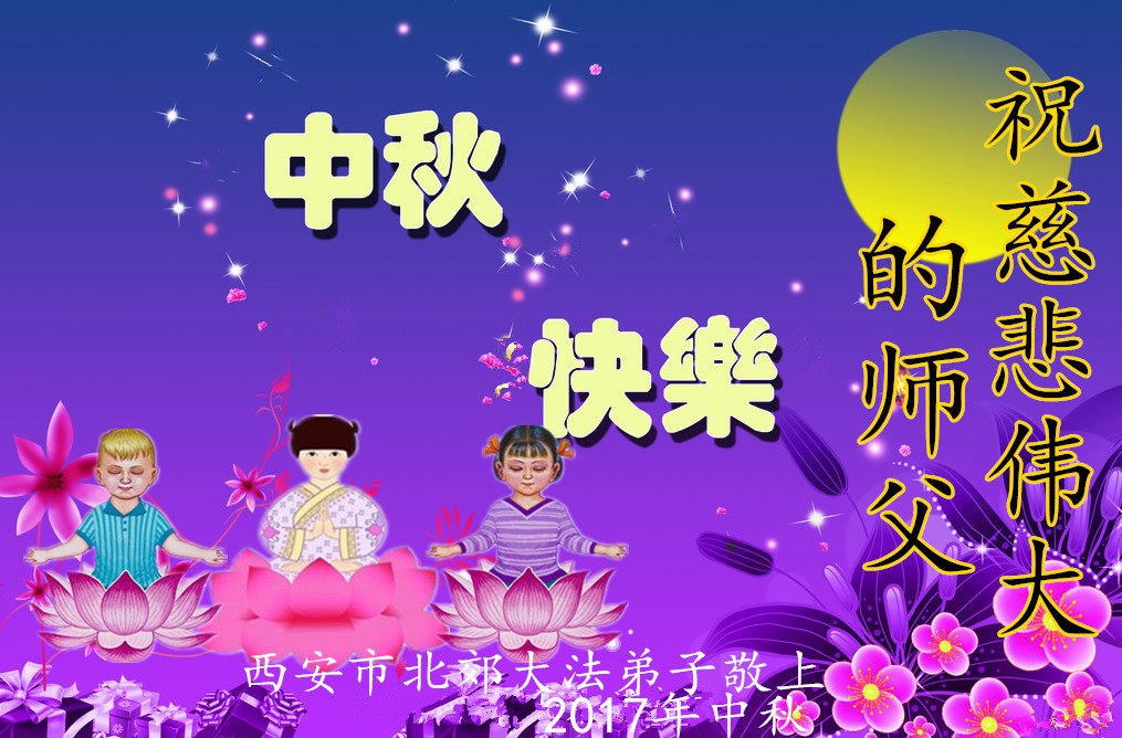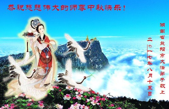 陕西省礼泉县二位明白真相的世人,委托法轮功学员向慈悲伟大的师尊表示节日的问候,敬祝师尊中秋节快乐!