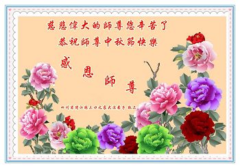 修炼法轮大法,是我生命中最大的荣幸与幸福。衷心感谢伟大的师尊慈悲苦度与呵护!在中秋节到来之际,弟子恭祝师尊中秋节快乐!合十