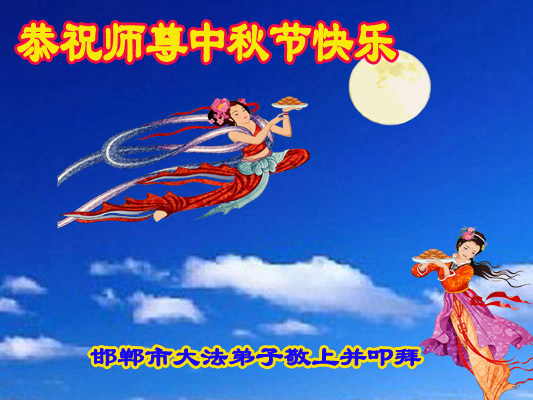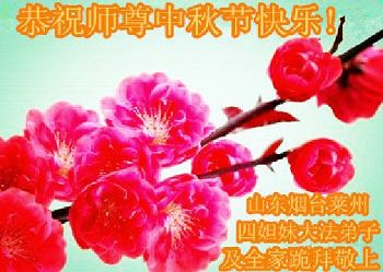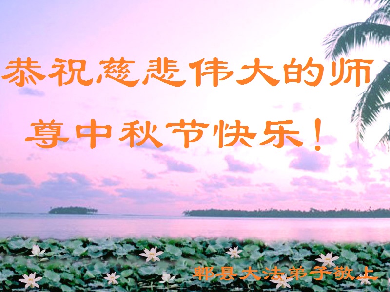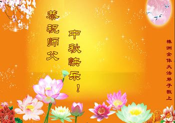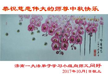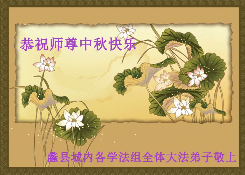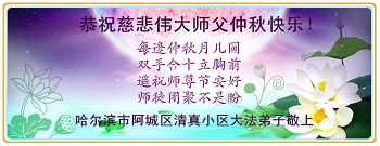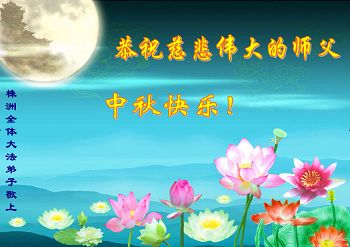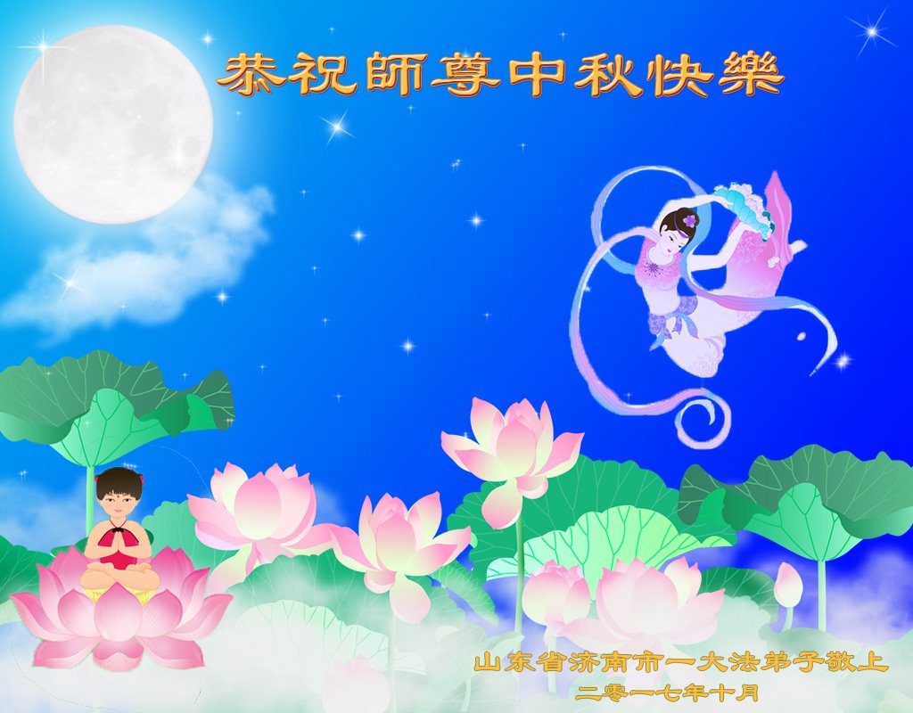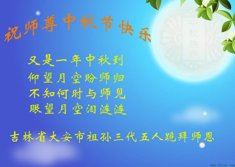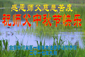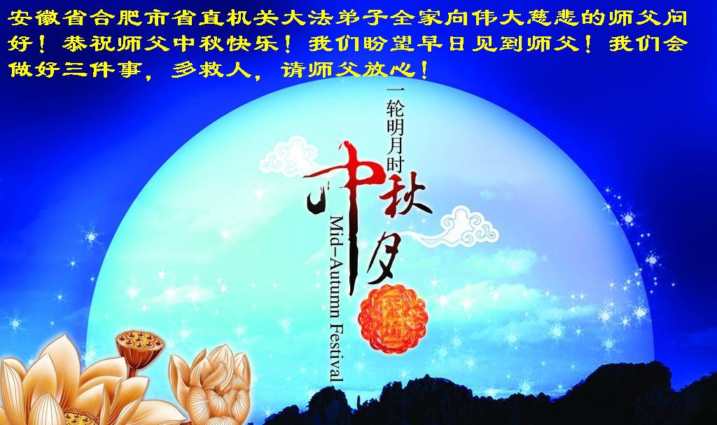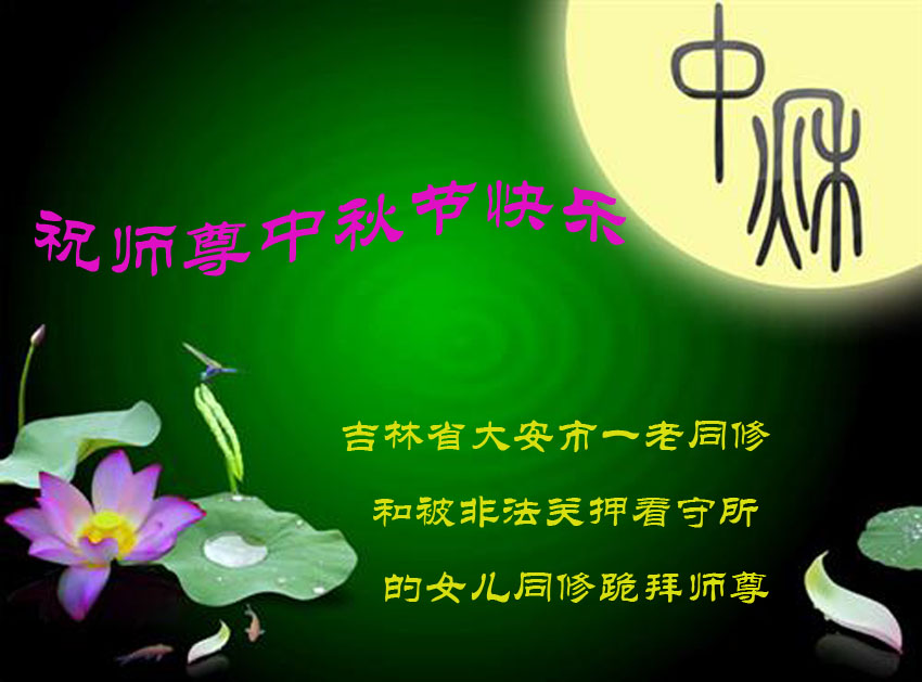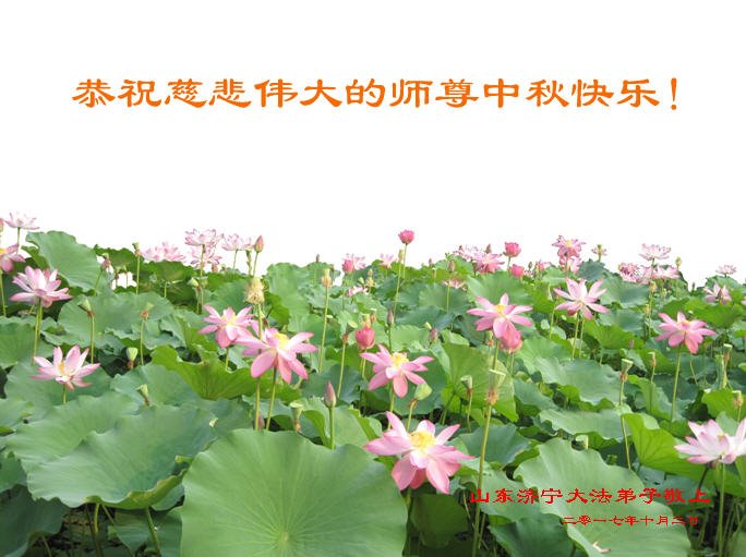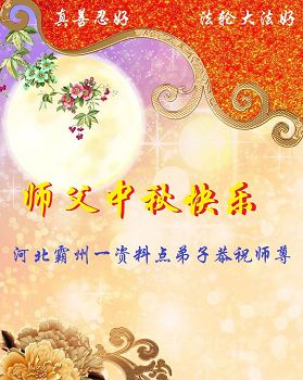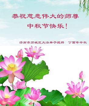 山东省省政府机关大法弟子在中秋节即将来临之际,向慈悲伟大的师尊致以最崇高的敬意和问候。祝师父中秋节快乐!弟子非常想念你,我们将一如既往的在助师世间行的道路上做好三件事,以完成好自己的历史使命,救度众生,再一次的感谢和叩拜师父的慈悲苦度。祝师父中秋节快乐!