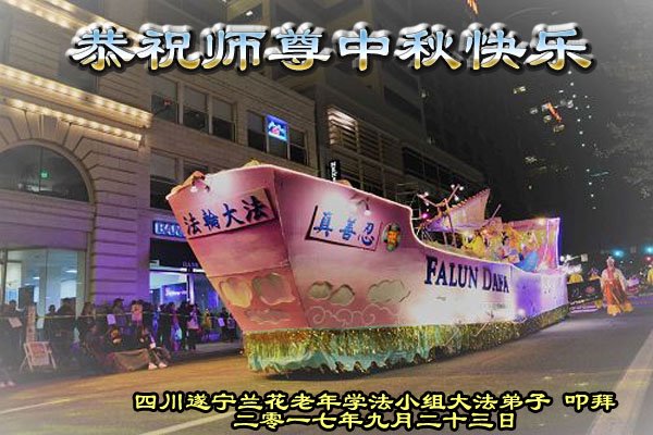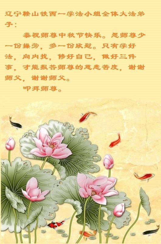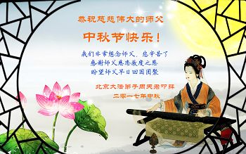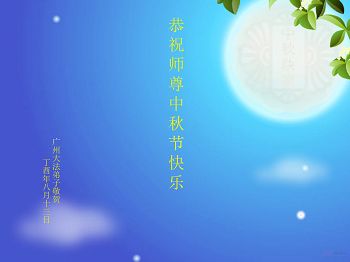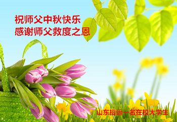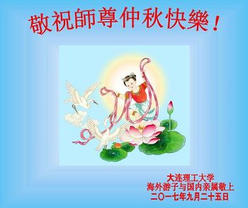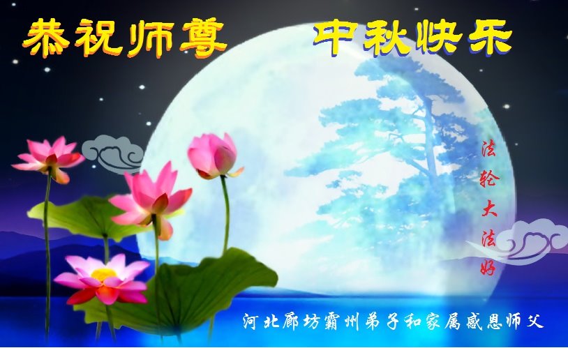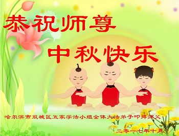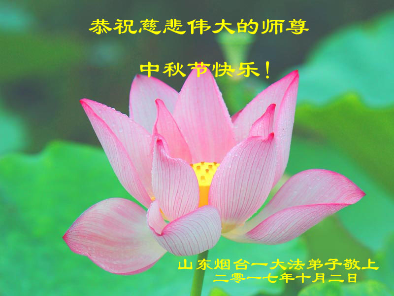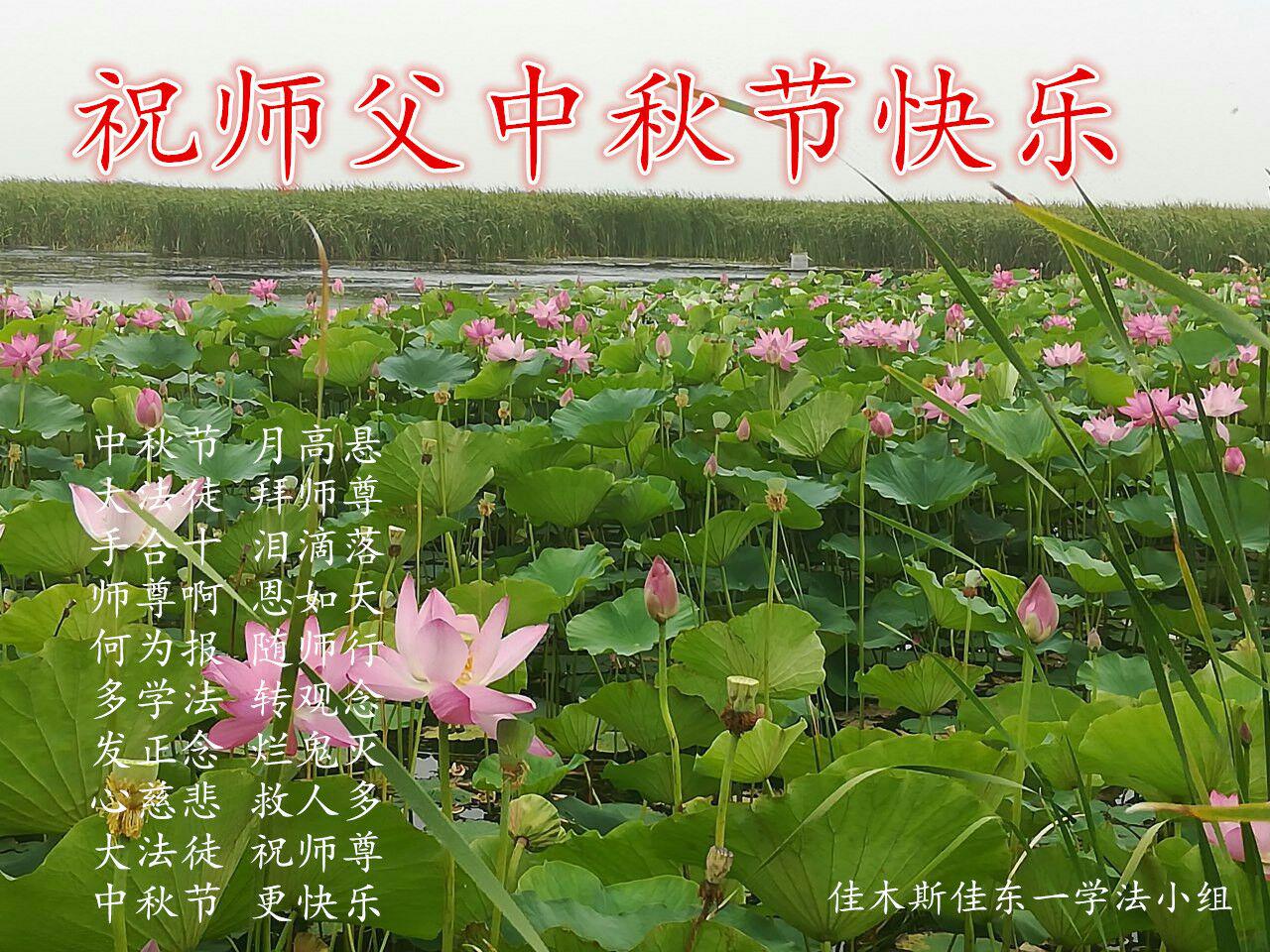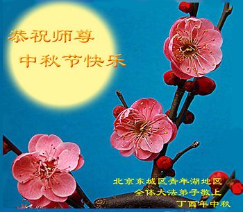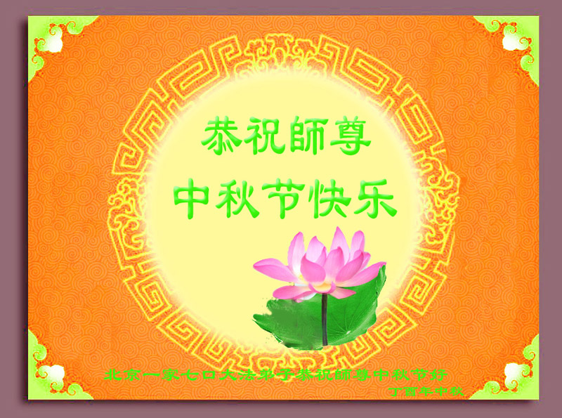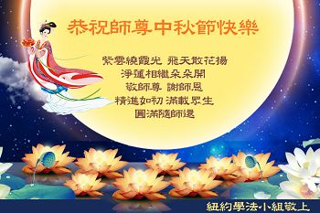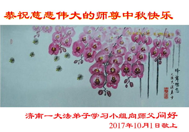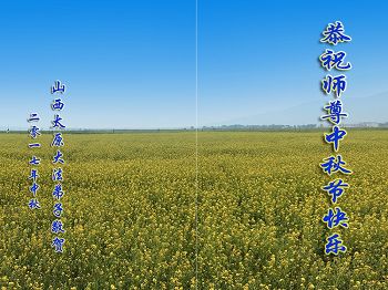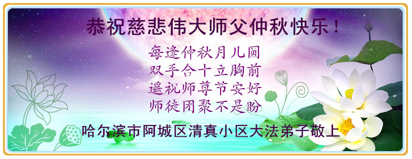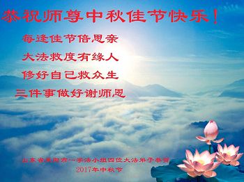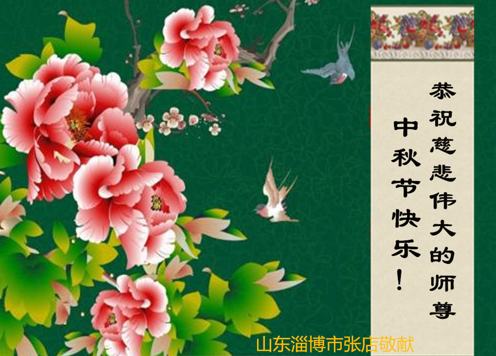 山东省省政府机关大法弟子在中秋节即将来临之际,向慈悲伟大的师尊致以最崇高的敬意和问候。祝师父中秋节快乐!弟子非常想念你,我们将一如既往的在助师世间行的道路上做好三件事,以完成好自己的历史使命,救度众生,再一次的感谢和叩拜师父的慈悲苦度。祝师父中秋节快乐!