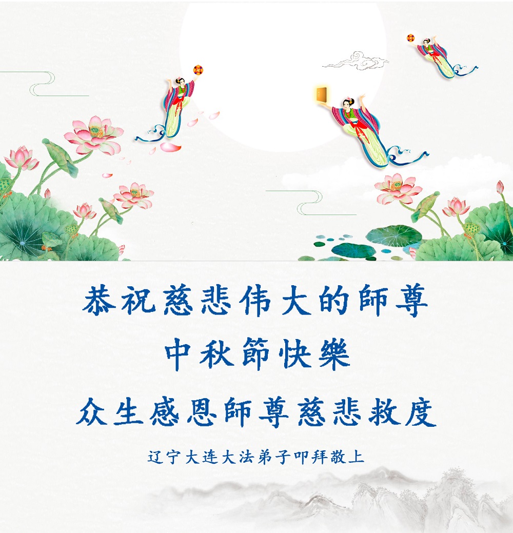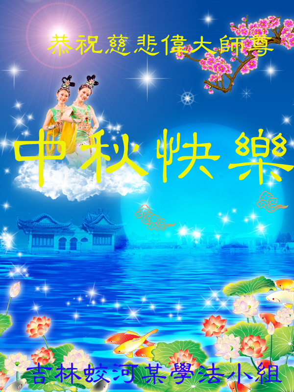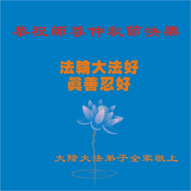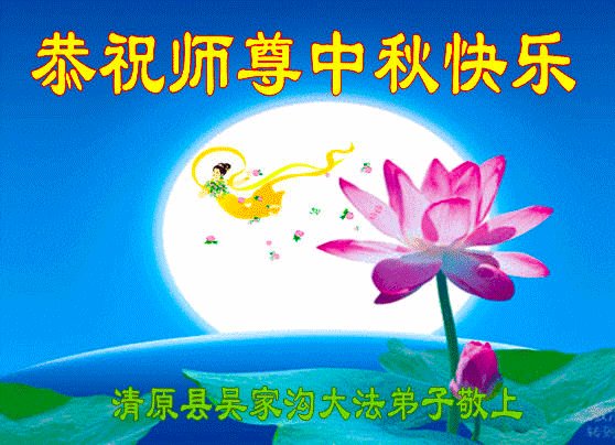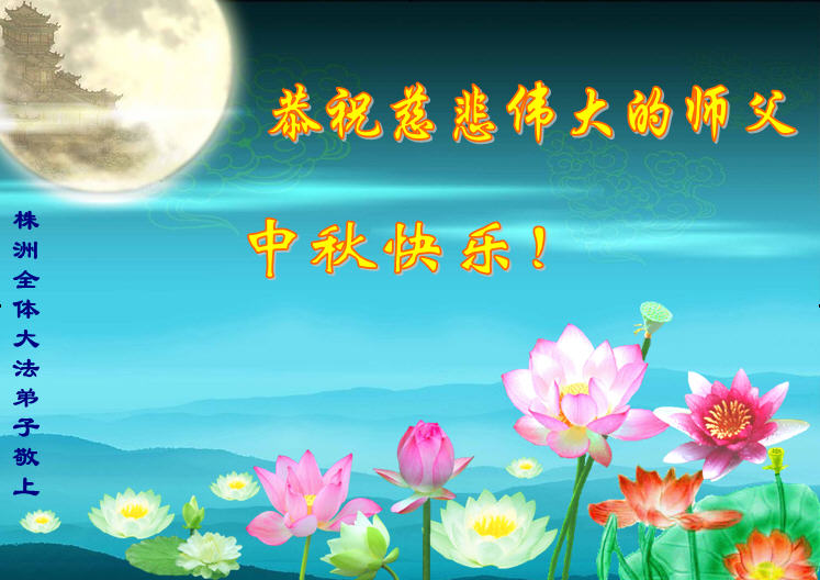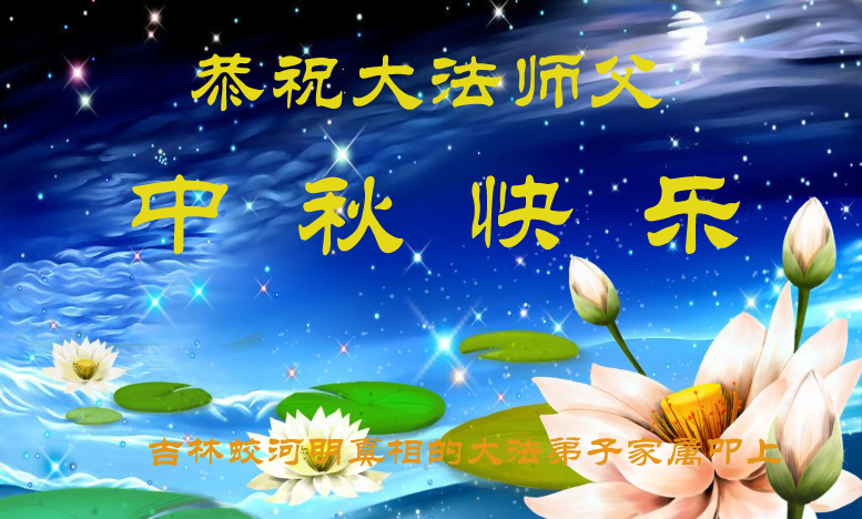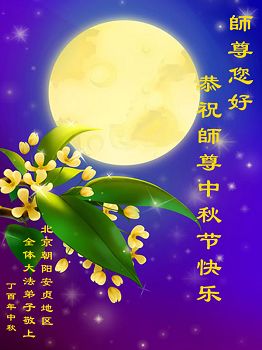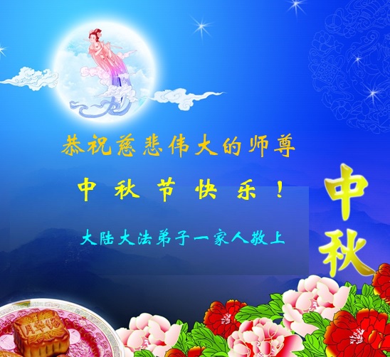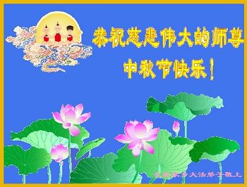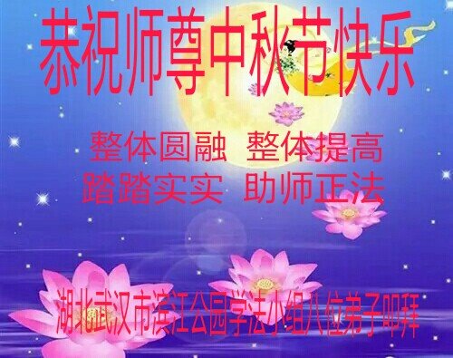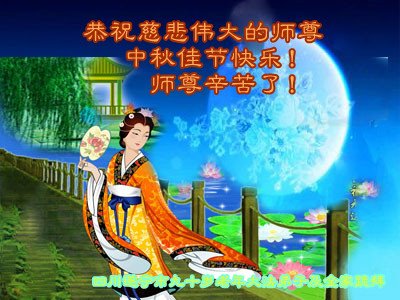 大陆全体法官大法弟子恭祝您中秋快乐!弟子们一定抓紧多学法、发正念,修炼好自己;抓紧讲真相,证实大法,救度更多的众生。决不辜负师尊的慈悲苦度。感谢慈悲伟大的师尊!谢谢!