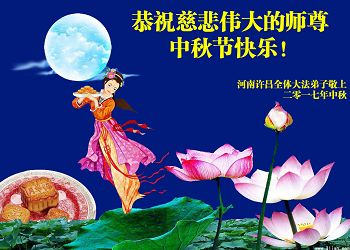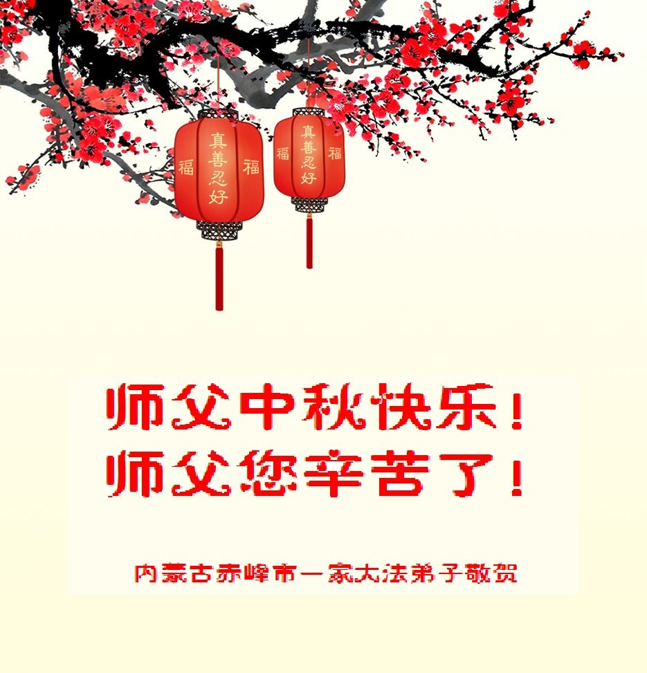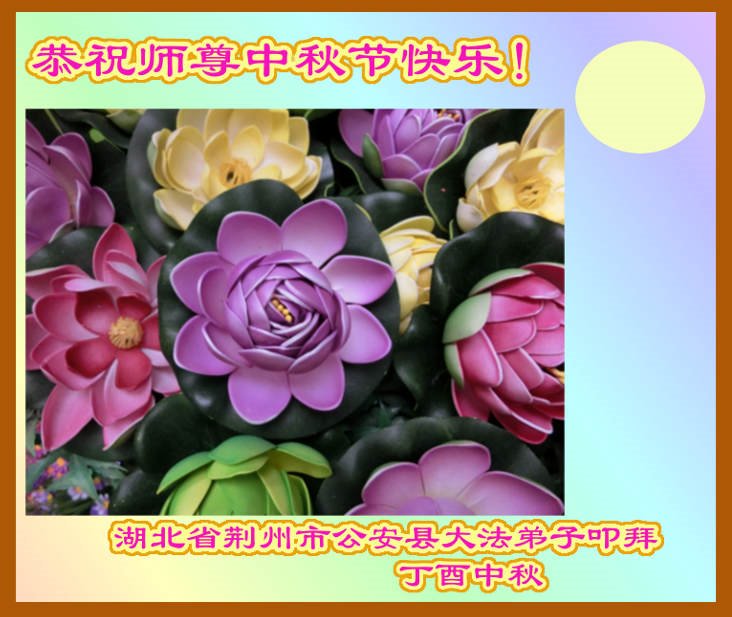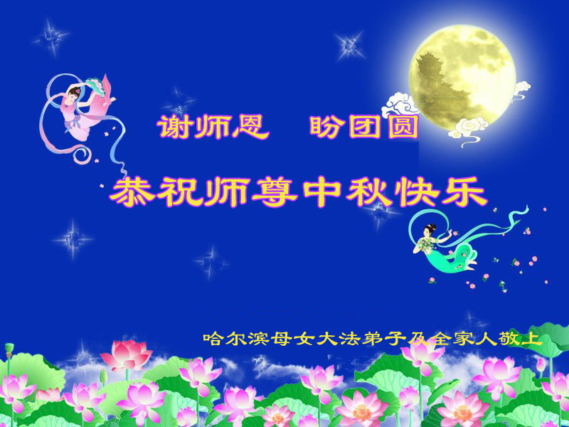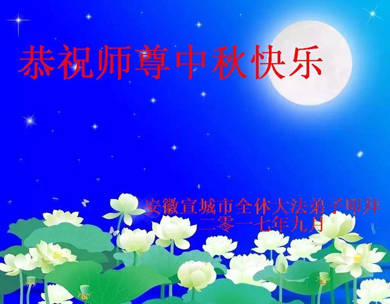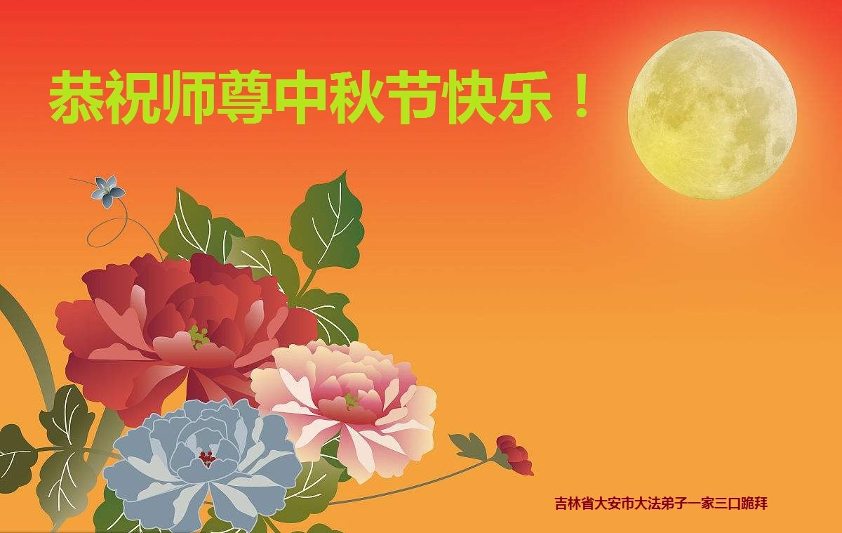 大陆全体法官大法弟子恭祝您中秋快乐!弟子们一定抓紧多学法、发正念,修炼好自己;抓紧讲真相,证实大法,救度更多的众生。决不辜负师尊的慈悲苦度。感谢慈悲伟大的师尊!谢谢!