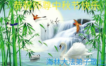 谢谢大法师父给了我明真相和祝您中秋节快乐的机会,这是我人生当中最大的幸事,在这个人类道德及其败坏的社会,您让我选择了正义,您让我明辨了是非,不再推波逐流,这才是我要的。