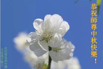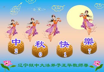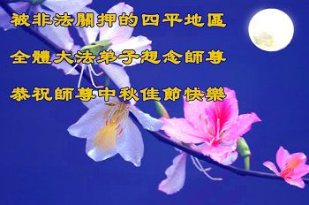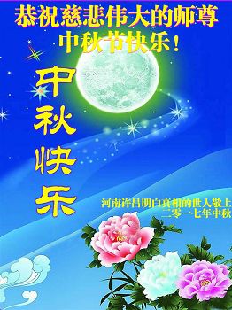 我借这个中秋佳节向法轮功师父问好。祝法轮功师父中秋快乐!我会记住“法轮大法好”、“真善忍好”九字吉言。感谢这位法轮功学员对我讲的所有真相,使我有了选择生命的机会。盼法轮功师父早日回国。