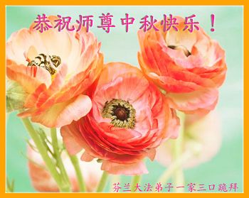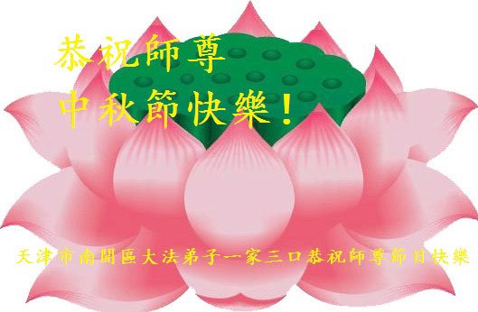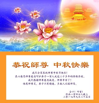 我是一名法轮大法弟子家属,同时受益于法轮大法。我有一个好的工作和一个幸福的家庭。这都是法轮大法师父给我带来的福报。在这中秋节到来之际,我向法轮大法师父问好,祝大法师父节日快乐!