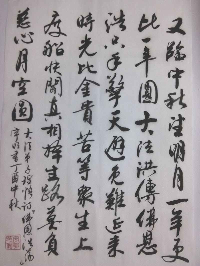 又到中秋佳节时,弟子倍加想师恩。千言万语表不尽,唯有做好三件事。扎扎实实学好法,修好自己救众生。走好最后修炼路,助师正法返天庭。
