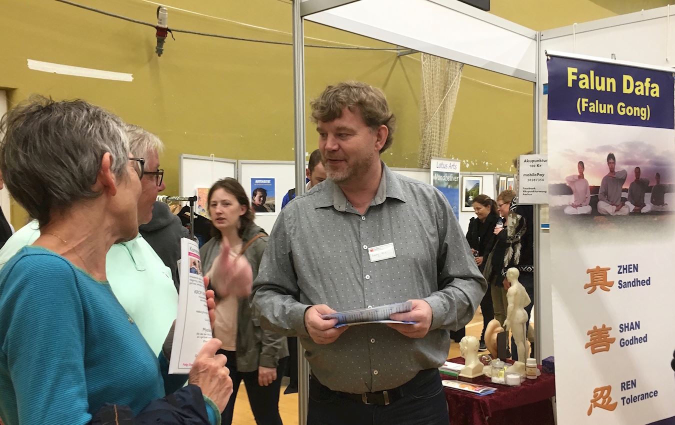 法轮功学员第一次参加的该市的健康博览会是在十七年前,中共迫害法轮功一年后。那也是在九月底十月初金秋季节。当时丹麦的民众很少听说法轮功,对中共迫害法轮功的情况更是不了解。后来在二零零三年,法轮功学员再一次参加了奥胡斯健康博览会。今年是第四次参加这个博览会,法轮功学员很有感触地说:“感觉到善良的民众都很认同真善忍的理念,十七年来越来越多的民众了解了法轮功和法轮功在中国无辜被迫害的真相。”