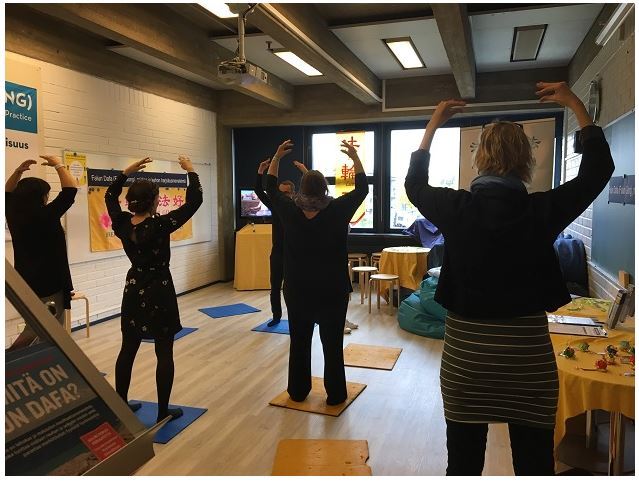 对于很多参加过“精神与认识”展会的芬兰人来说,法轮功(法轮大法)早就是耳熟能详的功法。在过去几年中,有不少参加这一展会的人当场学习法轮功五套功法,也有些人在法轮功展位前驻足观察,并且希望了解炼功点地址从而方便以后学功。在二零一七年十月十四至十五日的两天展会期间,前来学功的人络绎不绝,教功的学员轮流教功,没有停歇过。