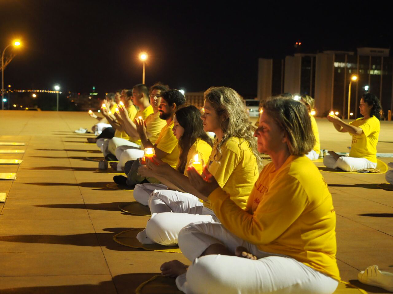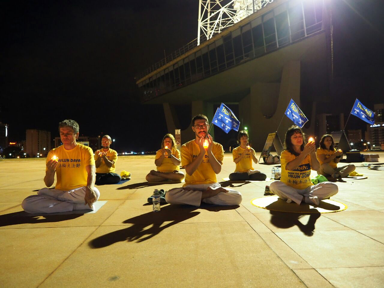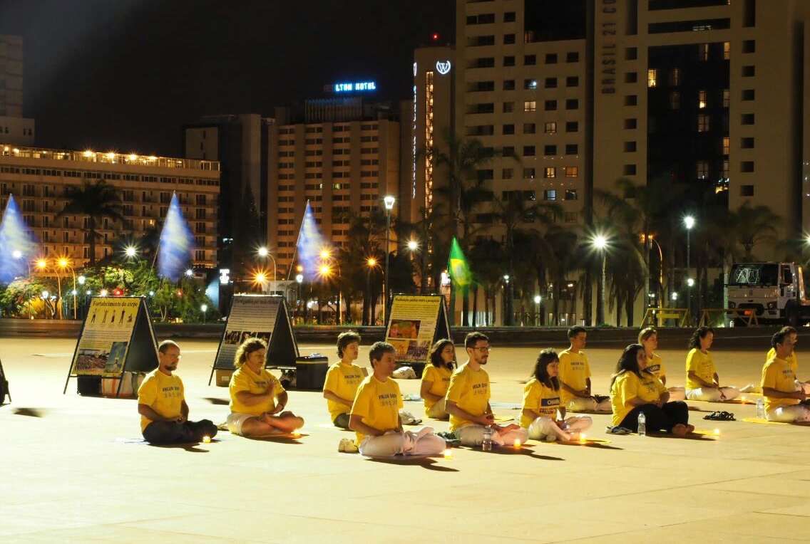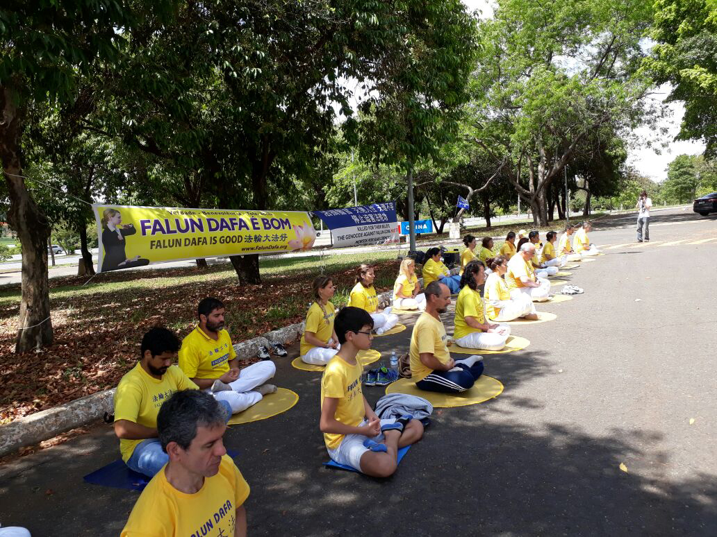 法轮大法是修身向善的高德大法,修炼者同化宇宙特性“真善忍”,要求自己做好人。但是中共却在中国迫害法轮大法修炼者,因此,在法会期间,巴西学员们来到中使馆前抗议中共的迫害,并要求停止迫害法轮功、惩办恶人、还法轮功清白。学员们平和的炼功、发真相资料、讲真相,来这里办事的人、路过的人、警察都了解了真相。