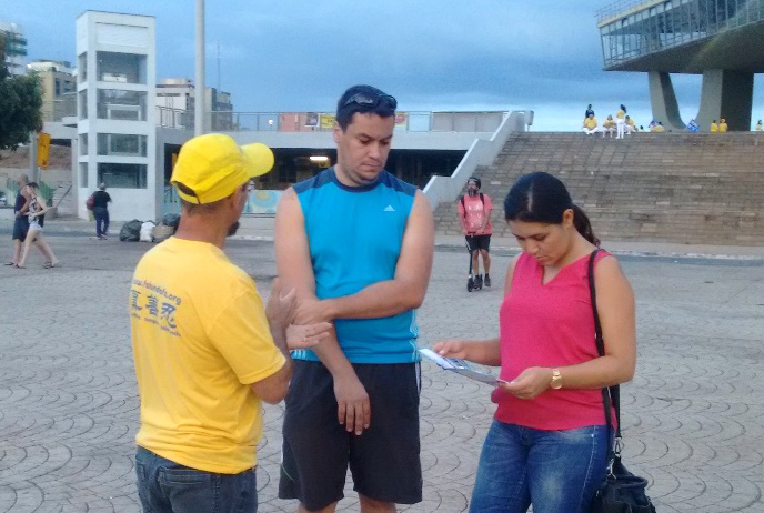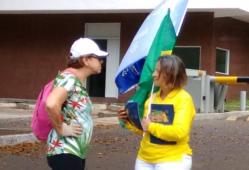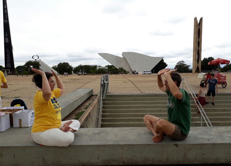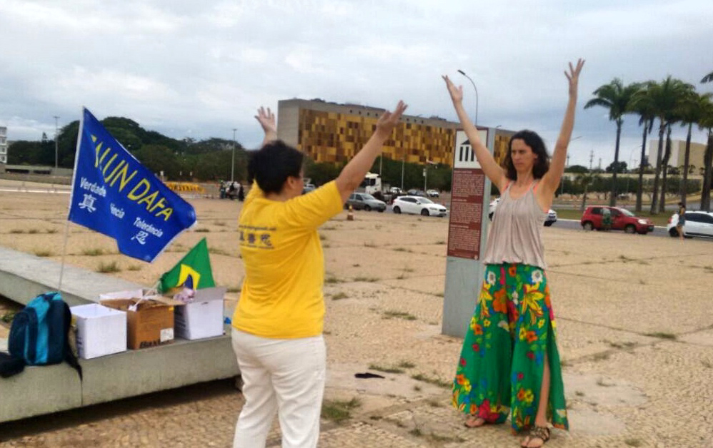 Veronica 学功后 ,与学员深入交谈,提出了向巴西议会提交关于制止中共活摘良心犯器官的方法,并表示周末要去公园与大家一起炼功。