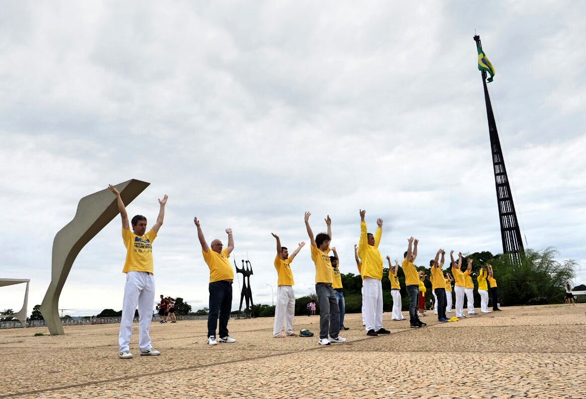 ![]() 图10:巴西学员在三权广场上炼功。 |