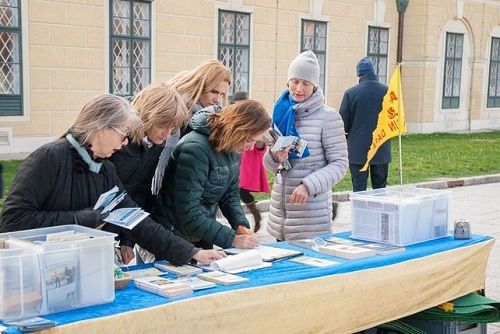 ![]() 图3:一对匈牙利父女签名支持法轮功反迫害 |