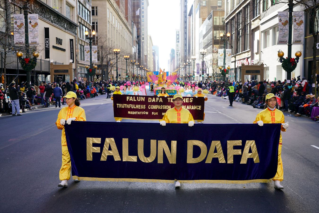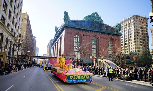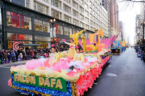 芝加哥感恩节游行始于一九三四年,那时叫圣诞游行,希望能给经济大萧条中的人民鼓舞士气。首年的节日游行大大增长了市民的信心,芝加哥感恩节游行因此成为信心和希望的象征。法轮功学员二零零三年首次参加芝加哥感恩节游行,赢得组委会青睞,之后年年获邀参加。今年已经是法轮功学员第十五年参加这一盛事。法轮功学员制作的大莲花花车也成为游行的经典花车之一。