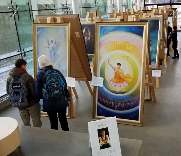 为期三天的“真善忍画展”由加拿大埃德蒙顿法轮大法协会主办,从十一月二十二日到二十四日,在阿伯塔大学学生会大楼内展出。美展由“天上人间 佛光普照”、“同化大法 返本归真”、“生命见证 正信永存”、“传播真相 呼呼正义”、“善恶有报 正义审判”等几个部份的三十几幅作品组成。