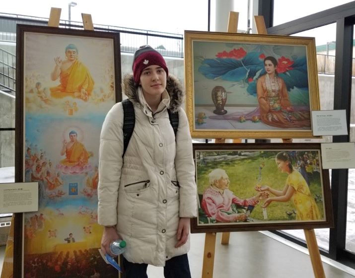 苔密·德皮尔桃(Tammy Depilteau )在每一幅作品前久久驻立,她的内心受到极大的震撼,这么美好的修炼在中国却受到如此令人震惊的残酷迫害。终于,她无法控制自己的情绪,在一幅名为《活摘器官的罪恶》的油画前,她的眼泪流淌下来。这是二零一七年十一月二十二日,发生在阿伯达大学学生会大楼内“真善忍画展”现场感人的一幕。