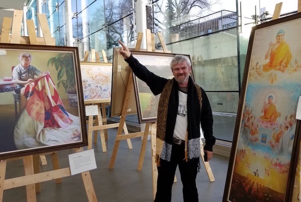 画展的最后一天,因工作关系从瑞士来阿伯达大学访问的一家网络电台的记者瑞尔·邓同(Real Denton)被画展吸引,在观看完所有的作品后,他对现场工作人员作了一个三十分钟的采访,深入地探讨了法轮功是什么,为什么在中国受到迫害,被活摘器官的情况,及人们可以做些什么来帮助法轮功学员。