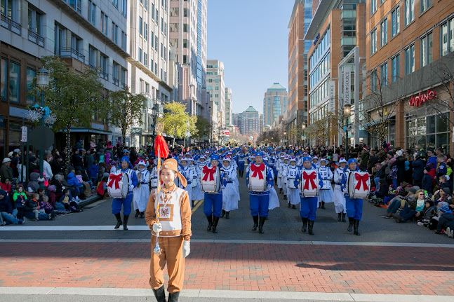 【明慧网二零一七年十一月二十六日】二零一七年十一月二十四日,感恩节过后的第一天,美国弗吉尼亚州瑞思顿(Reston)镇举办了第二十七届“瑞思顿节日游行”。法轮大法天国乐团首次参加,获得主办方和观众的称赞。