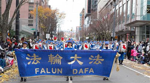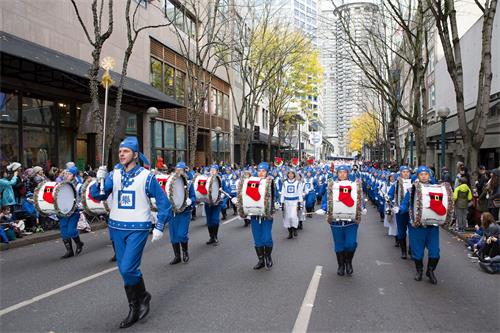 ![]() 图1~3:二零一七年十一月二十四日,西雅图举办一年一度的梅西感恩节大游行,来自美国旧金山、西雅图和加拿大温哥华的法轮功学员组成的天国乐团参加了此游行,受到观众们的欢迎。 |