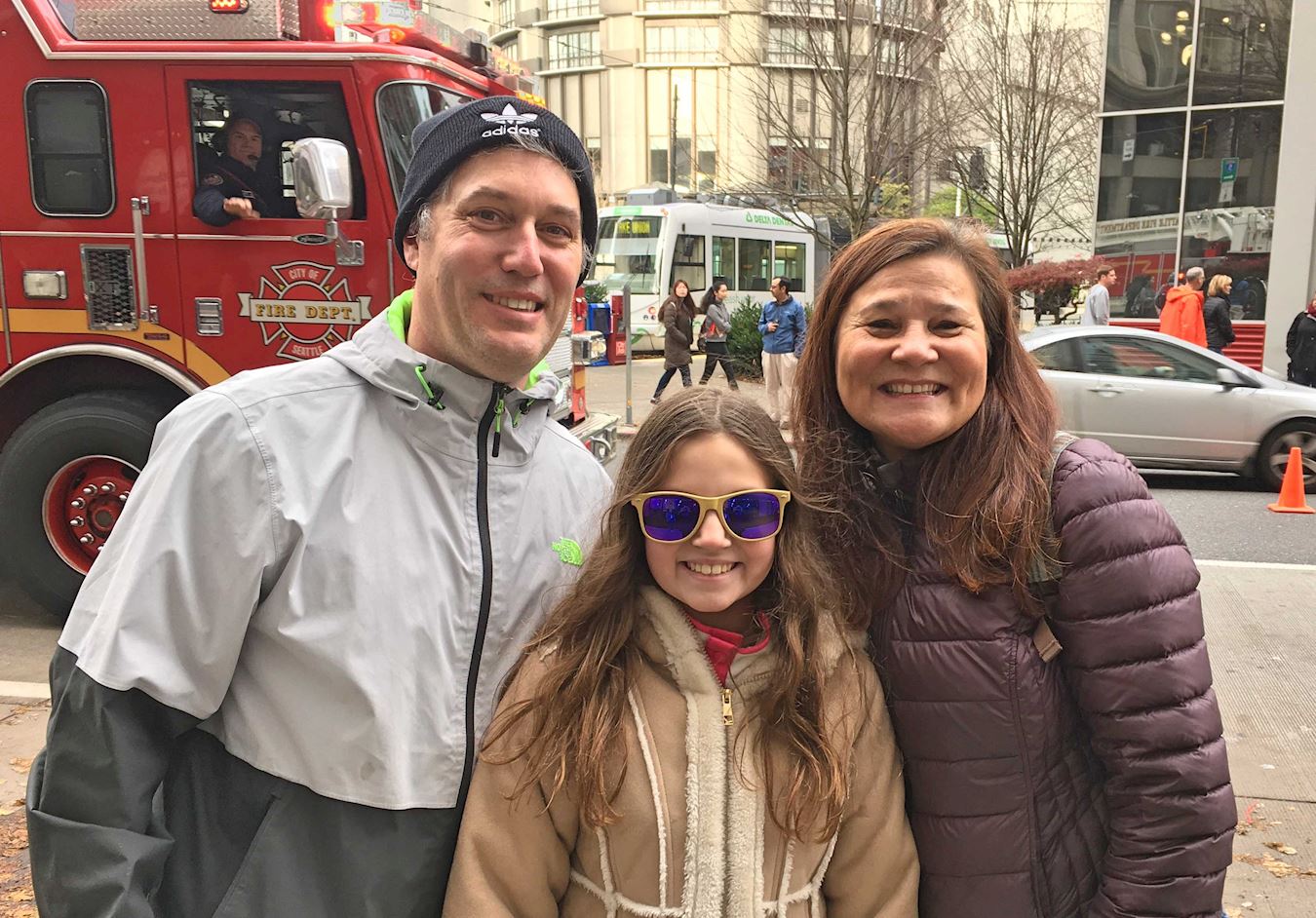 ![]() 图4:Gary和Donna夫妇带着女儿Milla观看游行,他们非常喜欢天国乐团的演奏。 |