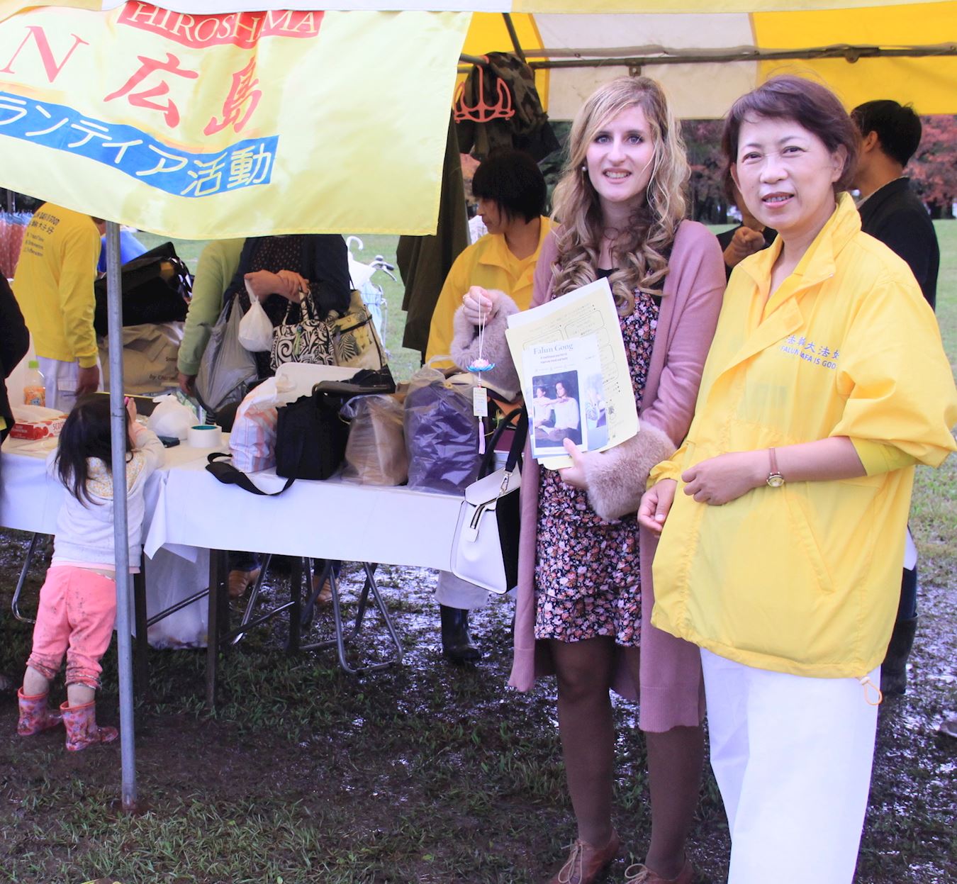 法轮功学员们从第一次参加到现在已经使很多人了解了真相。特别是活动组织者通过一次次的接触更是明白了法轮功的美好。本次活动代表山本先生,实行委员长生田先生观看功法演示的同时,也一起炼了起来。之后在接到法轮功的炼功点传单后,生田先生非常惊讶广岛有这么多公共设施可以学到法轮功,并详细地询问功法特点,炼的时候是否要注意呼吸等等。