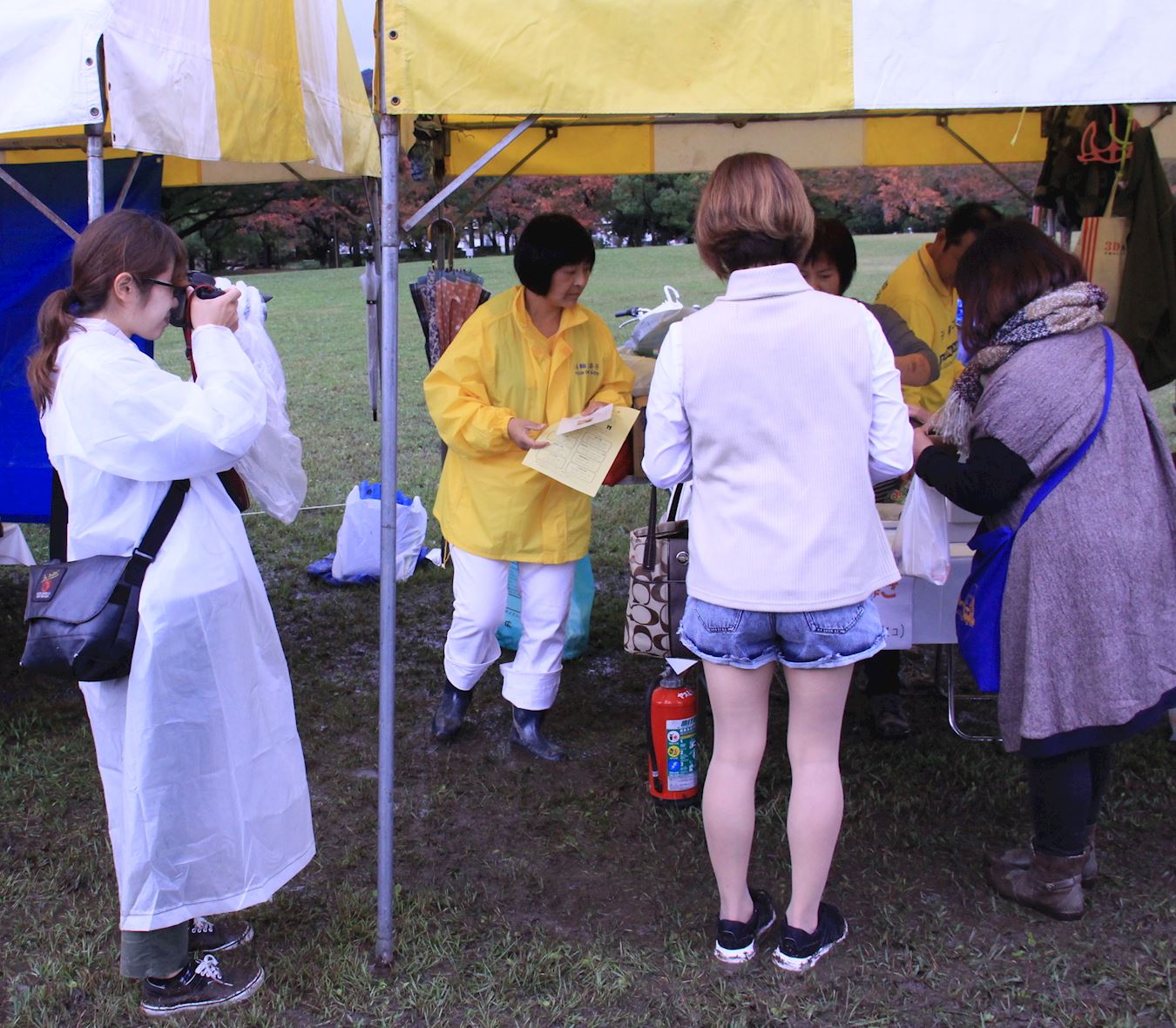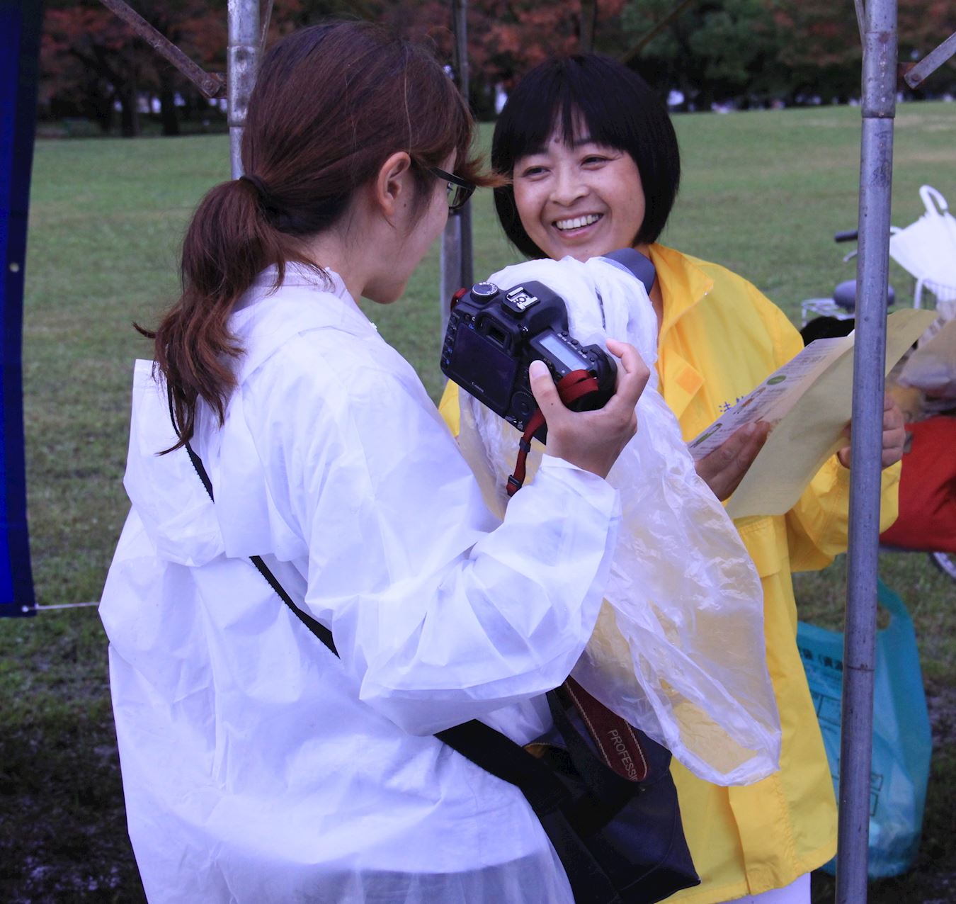 广岛市的电视台的记者也来到法轮功的展位前拍照后,详细的听了法轮功的介绍,并领取了介绍法轮功的资料。