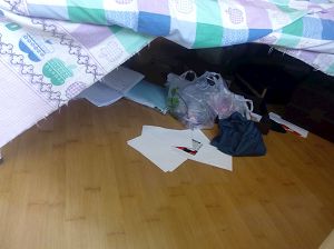 ![]() 图:李绍志被警察非法抄家,家中一片狼藉。 |