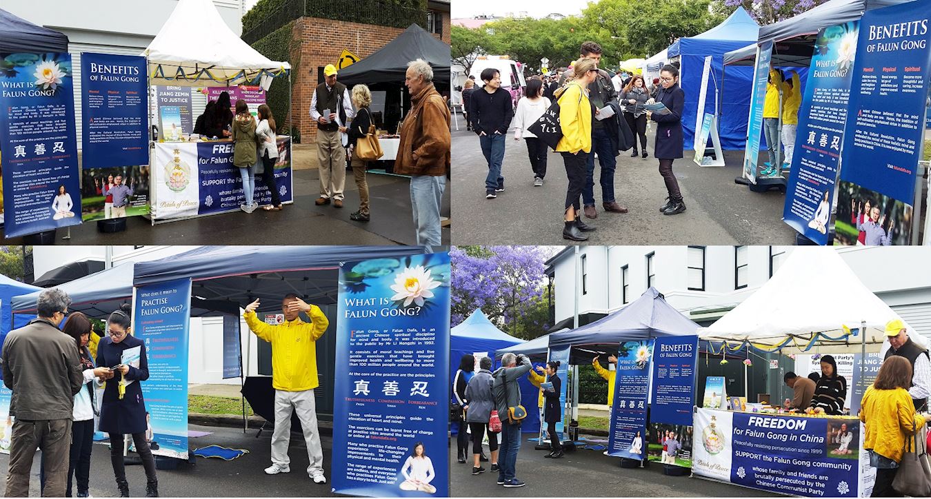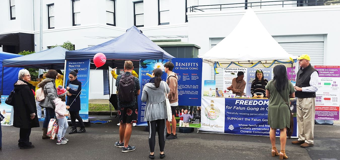 ![]() 图1~2:法轮功在双湾区(Double Bay)的街头集市受到民众关注 |