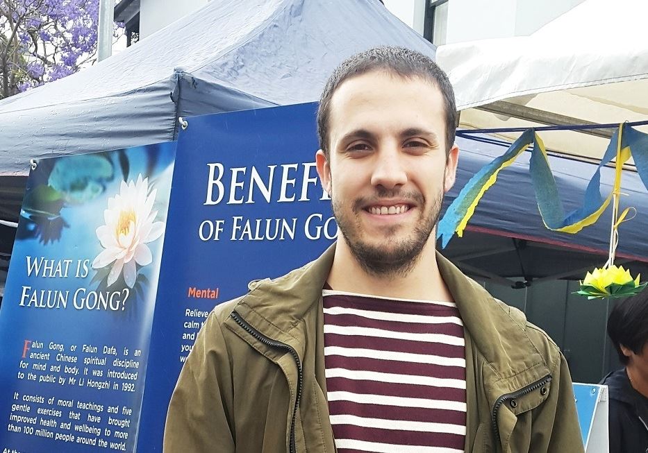 原来保罗在悉尼市中心的鱼市场(Sydney Fish Market)对面经常看到法轮功学员讲真相的展位,他已经了解法轮功的美好,今天当看到法轮功横幅展现在他眼前时,禁不住立刻发出由衷的赞扬声。他还对周围展位的人介绍说:“我支持法轮功!他们是一群很好的修炼人,我自己也练太极和气功,我能感受到法轮功祥和强大的能量场很好。”