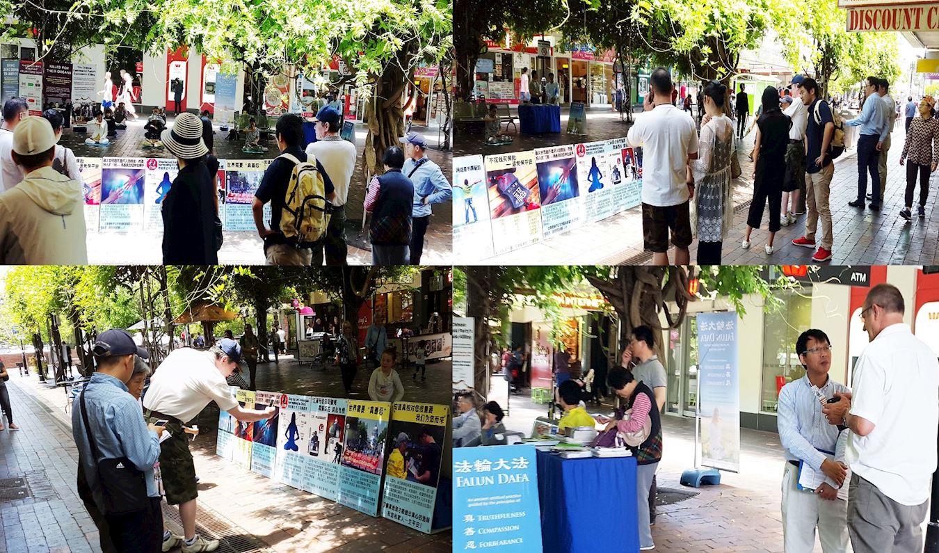 二零一七年十一月十九日的周日正午,法轮功学员在悉尼华人聚集地伊士活(Eastwood)举办讲真相活动,当地许多华人观看真相图展,有的拍照传给大陆亲朋好友看;有的和法轮功学员探讨、了解真相。