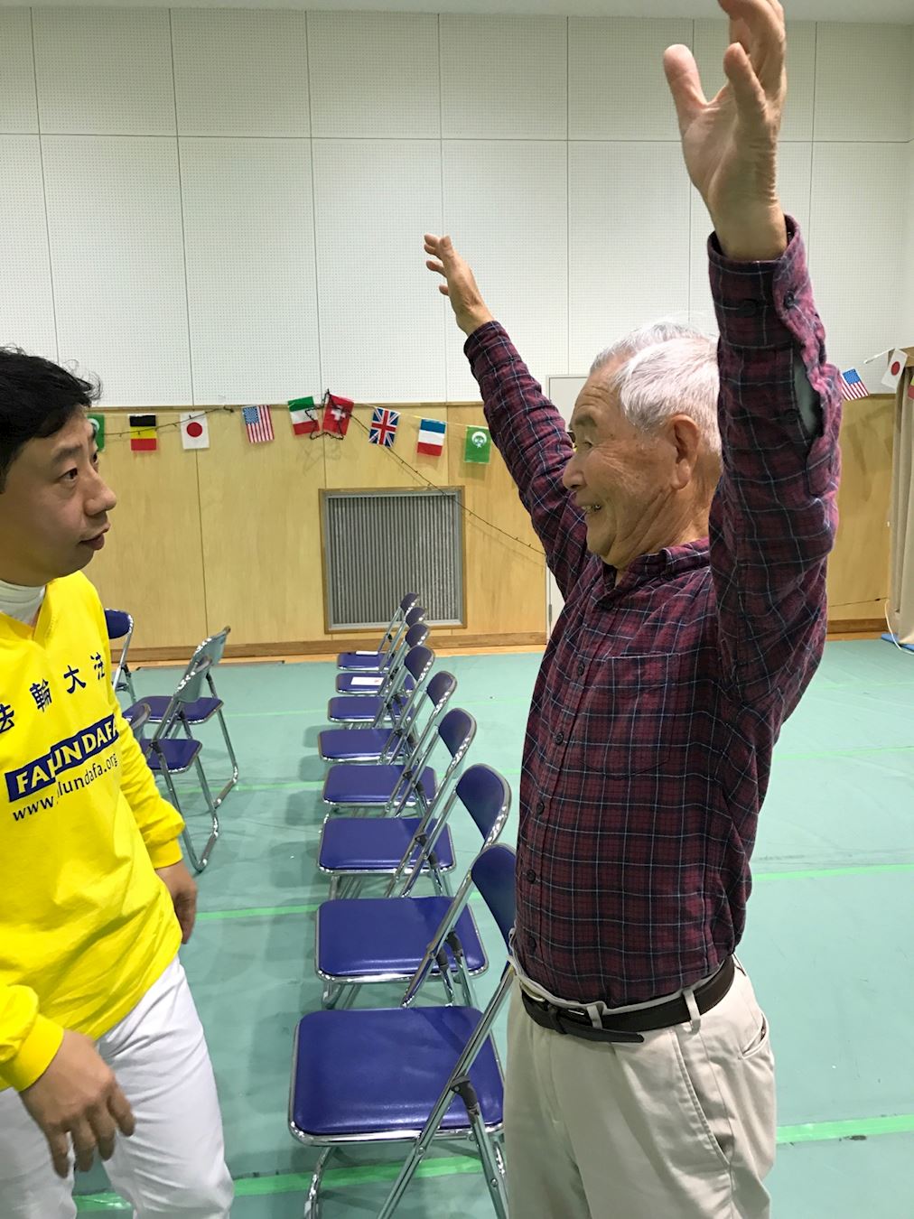 ![]() 图6:这位老者兴奋地说,功法动作非常舒缓,而且越炼身体越热,感觉真是太好了! |