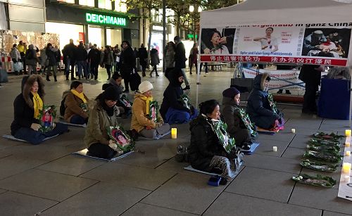 ![]() 图1-2:二零一七年十二月九日,法兰克福的法轮功学员举办烛光守夜,悼念在中国被中共迫害致死的法轮功学员。 |