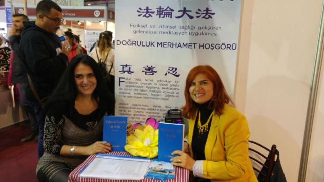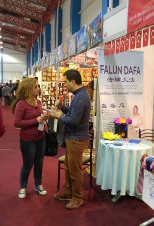 Türkan夫人表示她曾经接触过法轮功,感觉很好,当在书展再次看到学员时,表示自己要再从新加入炼功。