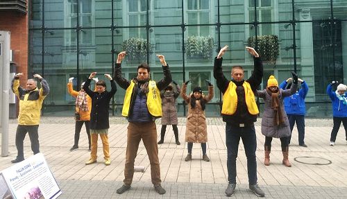 图1-3:波兰法轮功学员展示法轮功的五套功法