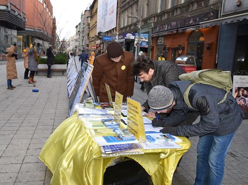 【明慧网二零一七年十二月二日】二零一七年十一月二十五日至二十六日,波兰法轮功学员来到西部城市波兹南市中心向当地民众介绍法轮功,受到人们的欢迎和关注。
