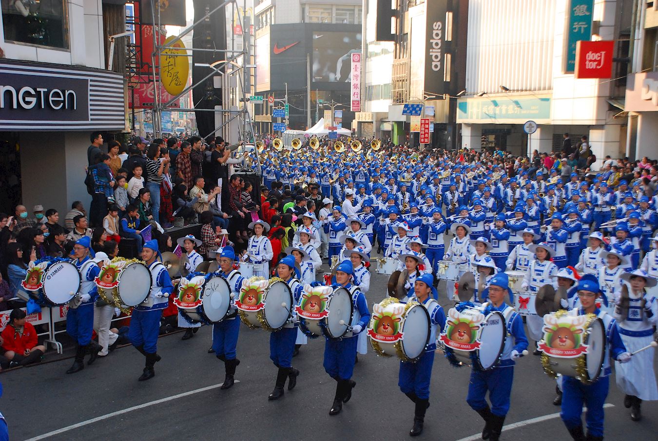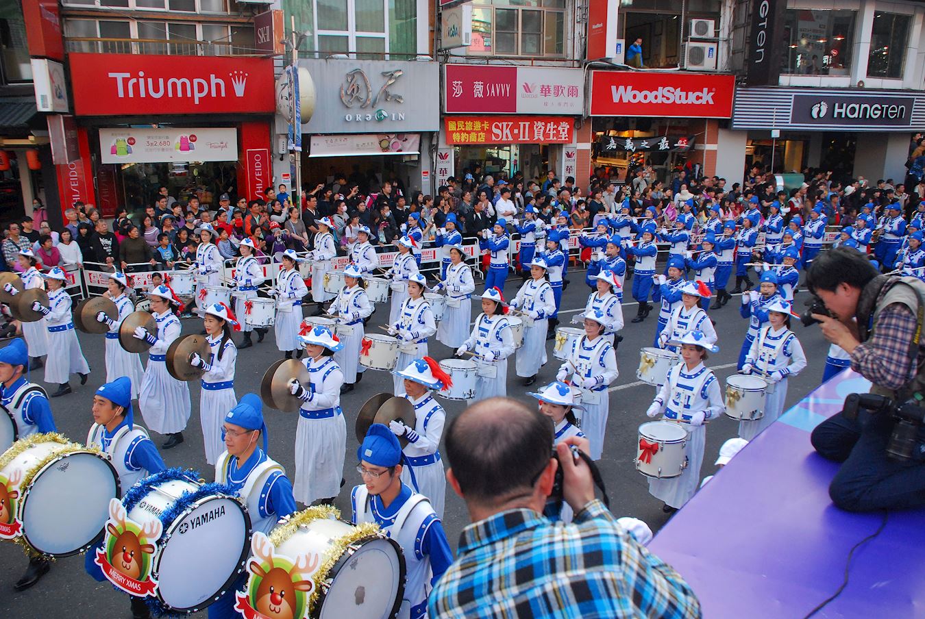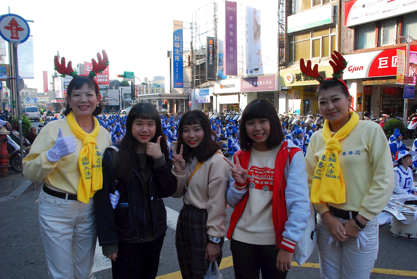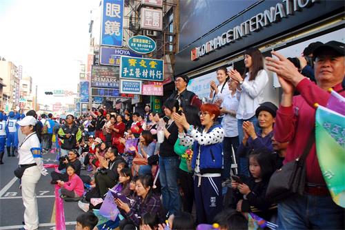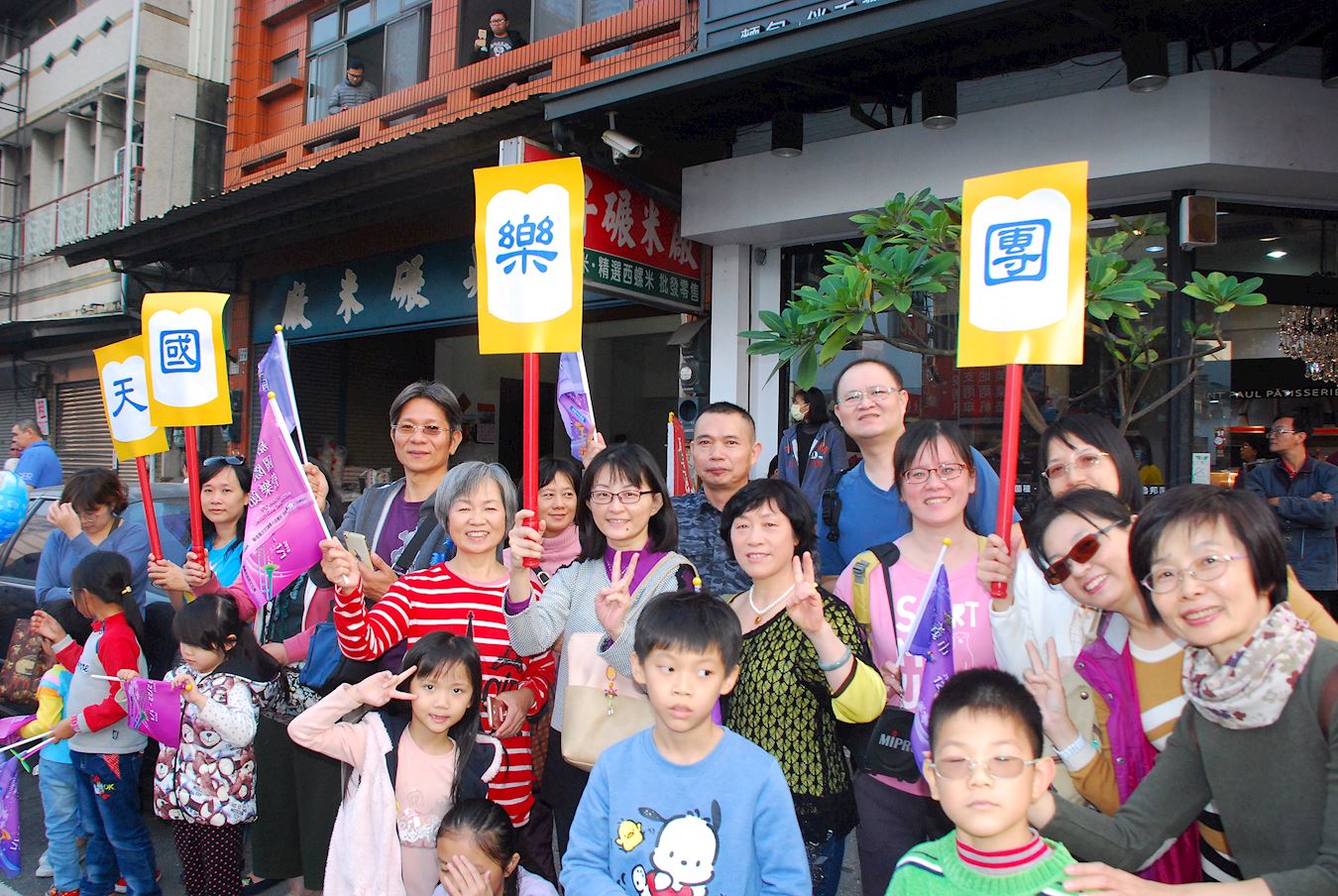 中山路是嘉义市人文商业荟萃的中心。乐团从中山路迈开脚步,奏出《法轮大法好》乐曲时,雄壮音乐震撼整条街道,吸引了民众的目光。经过吴凤北路、民族路,走过启明路、体育路,沿路万人空巷,围观的群众望着天国乐团惊呼说:“这是最壮观的乐团。”
