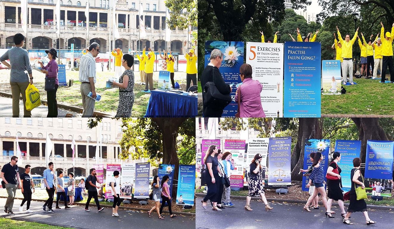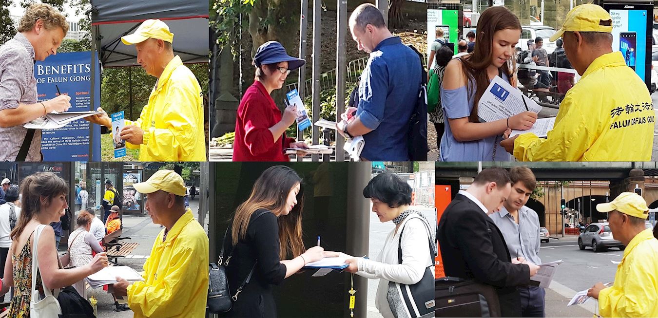 很多华人看到法轮功学员在悉尼市中心的主街上展示五套功法、揭露中共迫害时,会感到很惊讶,有的主动走近关注和询问。