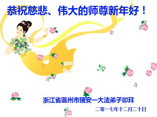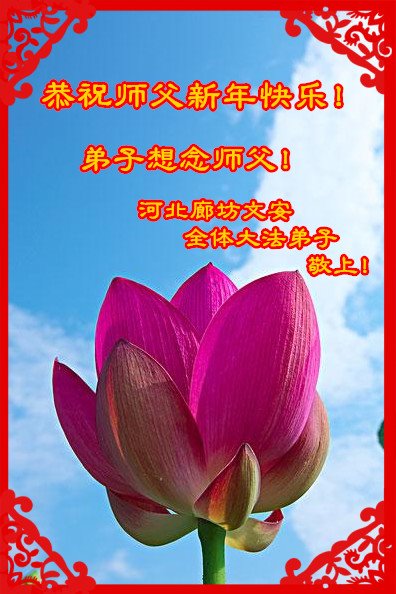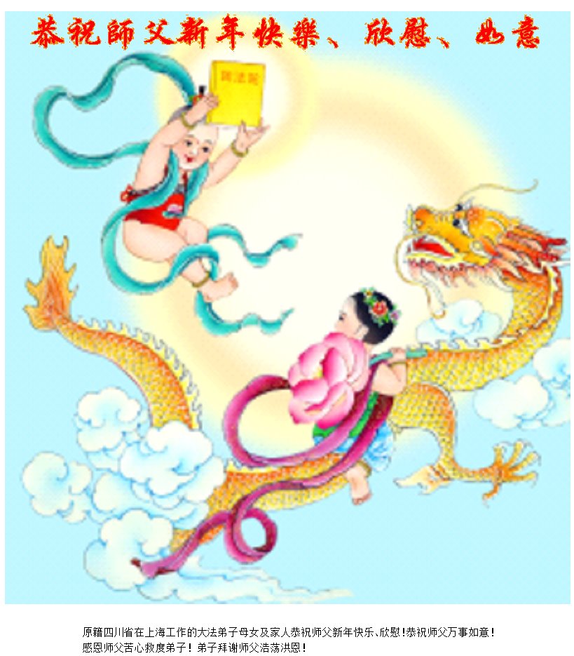 值此新年到来之际,我作为大法弟子家属,向师父献上诚挚的问候,祝师父新年快乐!早日回国!神韵早日登上中国大陆的舞台!叩谢师父救度之恩!