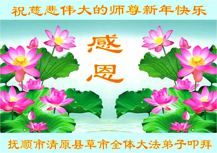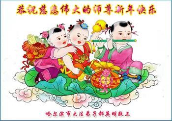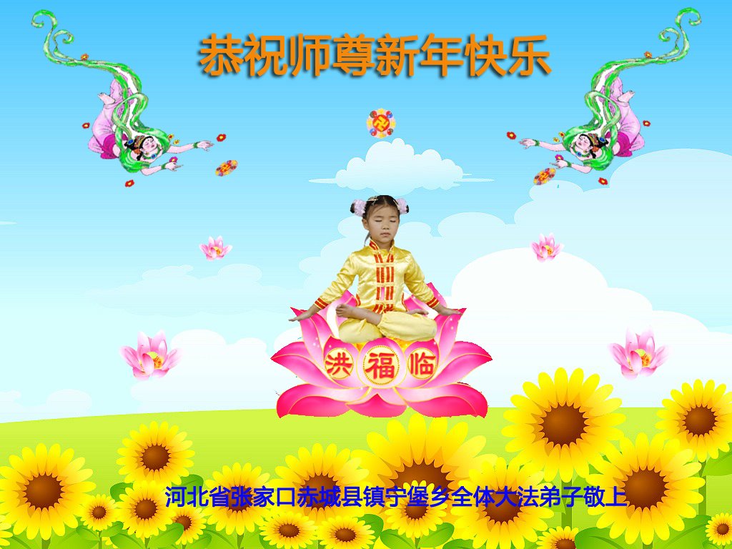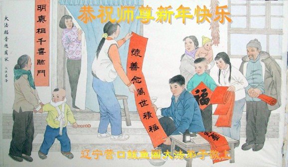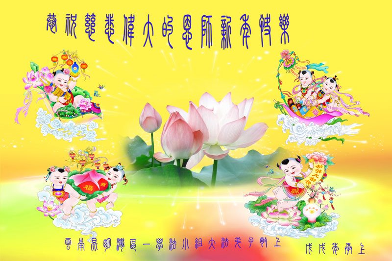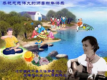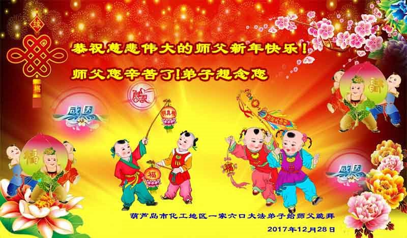 为此在新年到来之际,我们全家七口人心怀无比的恭敬之心,恭祝慈悲伟大的李大师新年快乐!我们会永远记住“法轮大法好,真善忍好”。