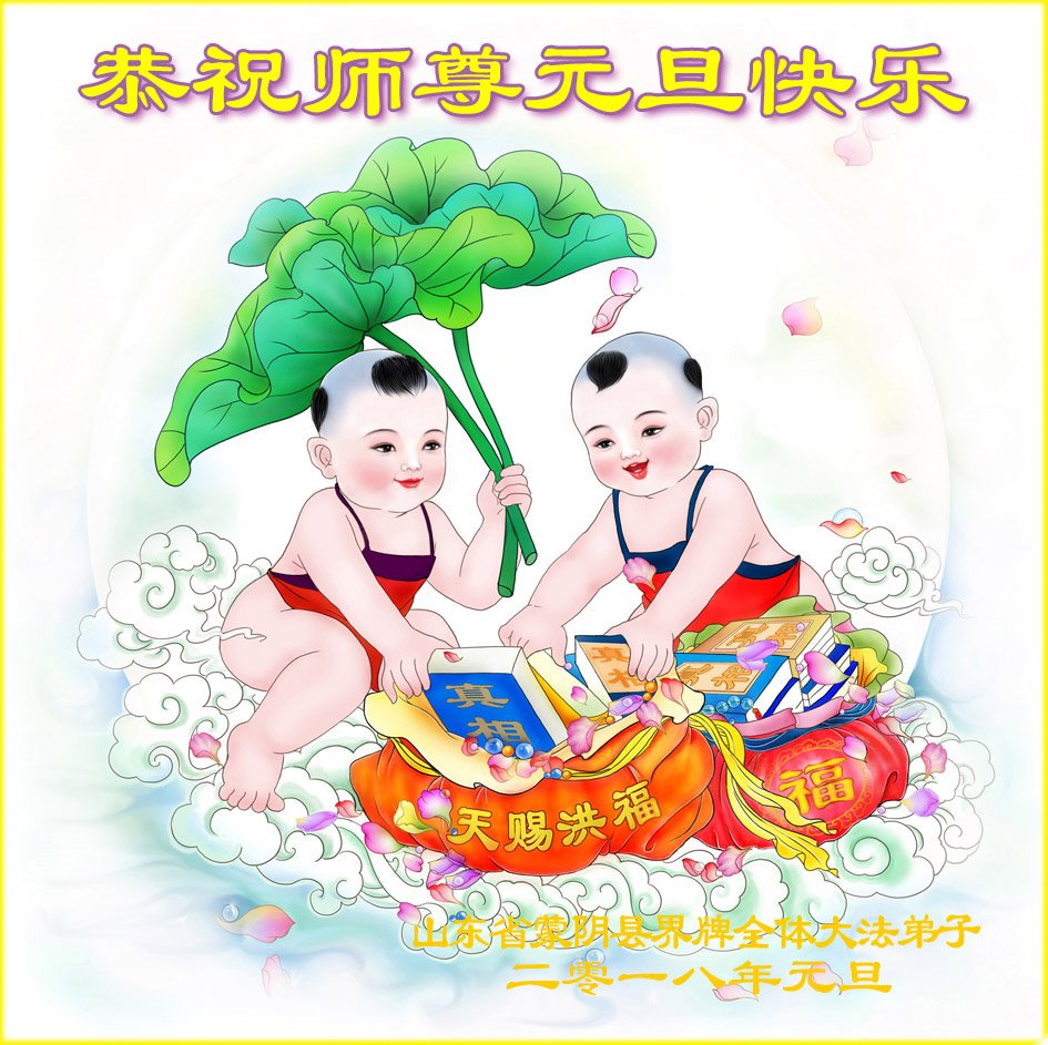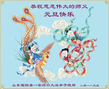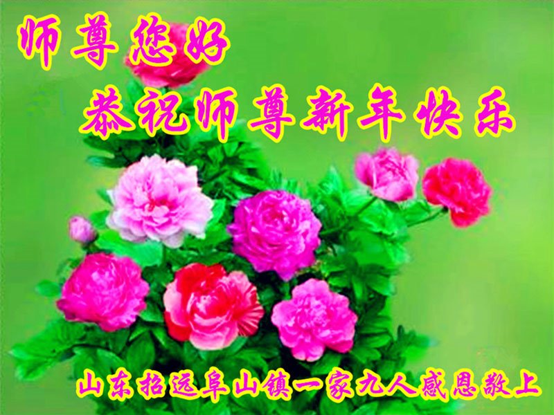 莘县朝城明白真相的大法弟子家人祝李洪志大师元旦快乐!“法轮大法好”、“真善忍好”九个字使我们全家受益。法轮大法佛光普照,真、善、忍牢记心中指导我们做好人,大法小册子让我们知道如何孝敬父母如何帮助他人,神韵晚会让我们感受到真正的中国神传文化是如此的震撼!