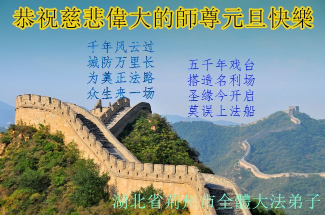 大陆大法弟子恭贺慈悲伟大的师尊元旦快乐!